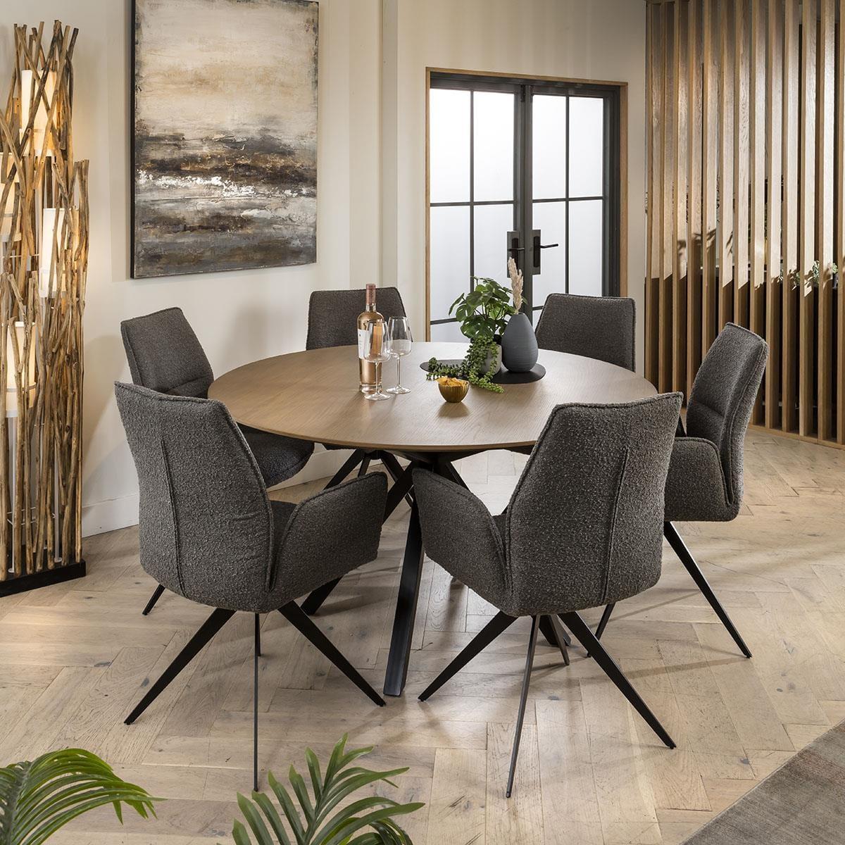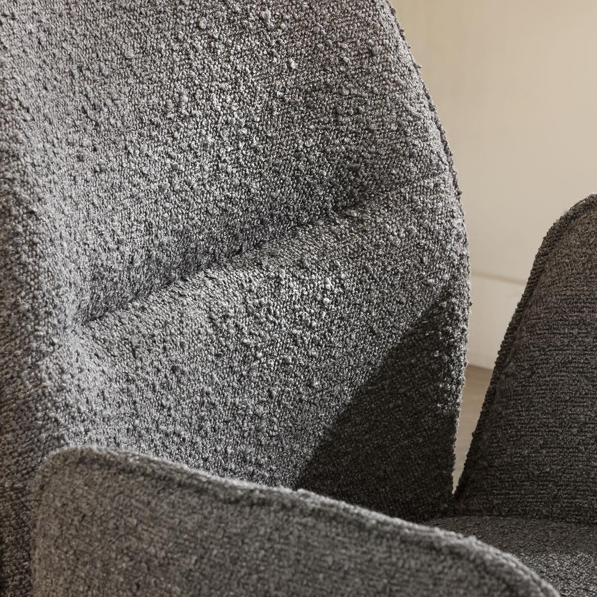 For contemporary elegance and comfort, choose the Nova dining chair. Crafted to perfection, this dining chair boasts a sleek and innovative design, wrapped in a durable grey boucle fabric. With its unique carver style featuring comfortable arms and metal swivel base, this chair is a true testament to modern luxury. The chair's design is a masterpiece in itself, boasting a unique chair design and exquisite piping along the chair's edge, elevating the overall aesthetics of any dining space. The grey boucle fabric not only adds a touch of sophistication but also offers durability, ensuring your investment lasts for years to come. Built for convenience, the chair comes with a 4-point swivel base, allowing for easy movement and accessibility around your dining table. The black powder-coated metal base not only adds stability but also complements the chair's sleek design, making it a perfect addition to your contemporary dining room. Complete your dining set with the Nova ultra-modern carver dining chair, where modern styling meets the best in design, comfort, and durability. W64cm D64cm H92cm Seat Height;510. Seat depth;470. Seat width;400. Set of 4 Dining Chairs