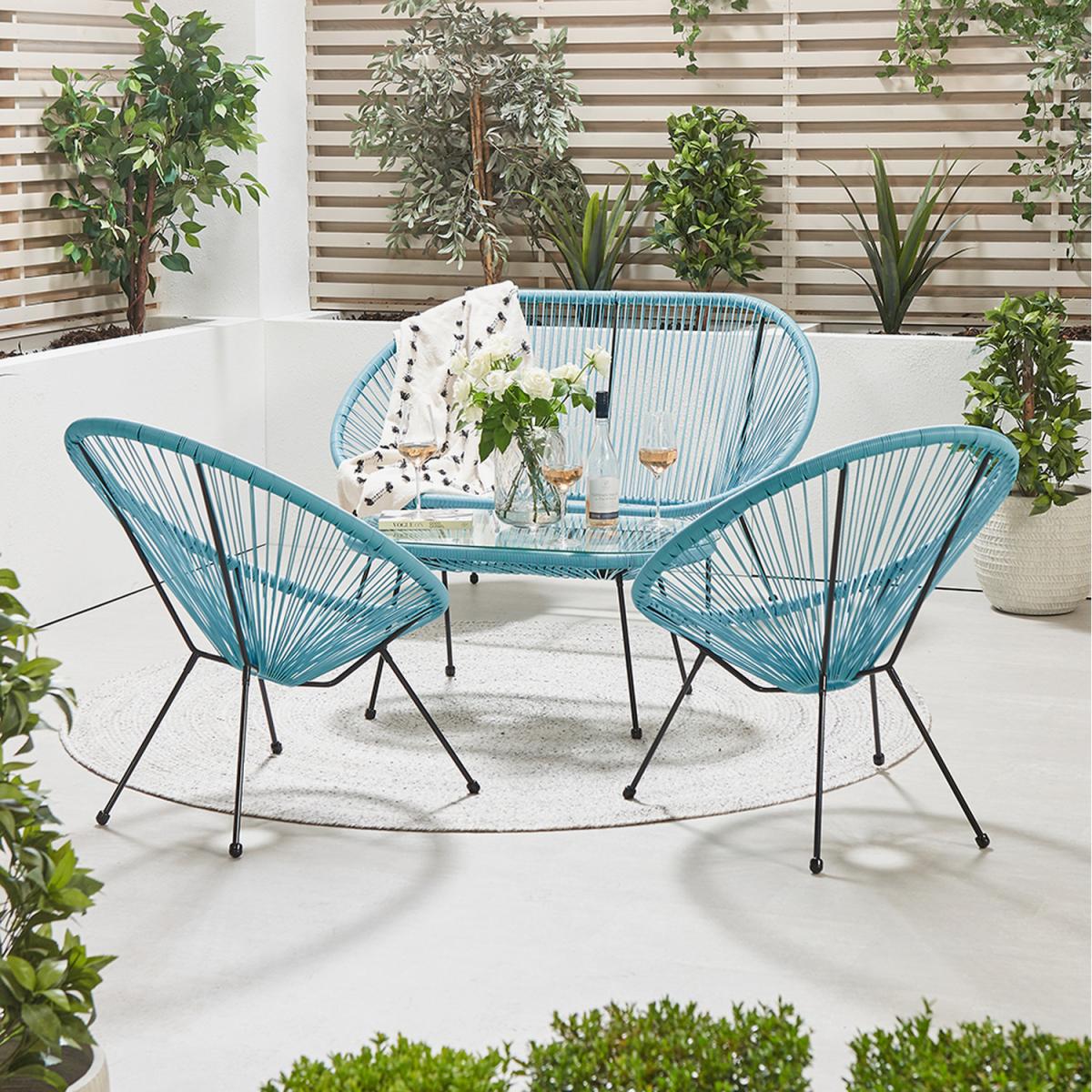 I love this set for its vibrant blue hue and contemporary rattan design, which instantly adds a fresh and relaxed vibe to any garden or outdoor space. It’s versatile enough to complement both modern and coastal styles, making it ideal for a patio or sun terrace. To style it effectively, consider layering with neutral or patterned cushions and a cosy throw for added comfort. Practical tips include placing it on a level, shaded area to protect the PU finish from prolonged sun exposure, and pairing with a simple outdoor rug to define the seating zone. This set is perfect for outdoor entertaining or casual family lounging, offering durability alongside visual appeal.