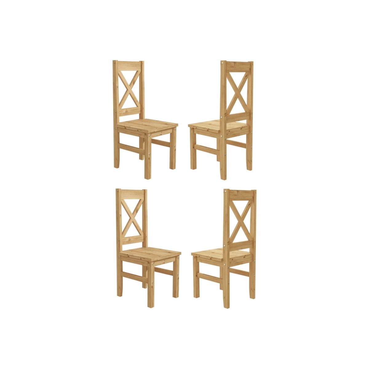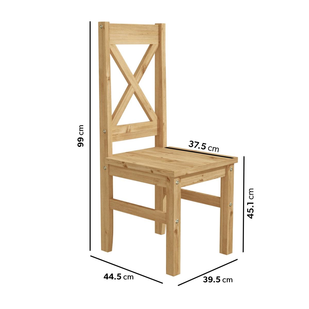 Create a warm and welcoming dining space with this set of 4 Emerson dining chairs. The tall chair backs with cross to give comfortable support, subtly tapered back legs and the exposed brass screws all add to the rustic styling. They'll suit both modern and traditional settings leaving you free to choose the dining table of your choice. Made from solid pine with a waxed finish, they'll withstand the demands of the family home for years to come as they're so durable and sturdy. They're easy to clean and maintain too, which means they'll continue to look good for a long time. These chairs require simple self-assembly but come with easy to follow step by step instructions.