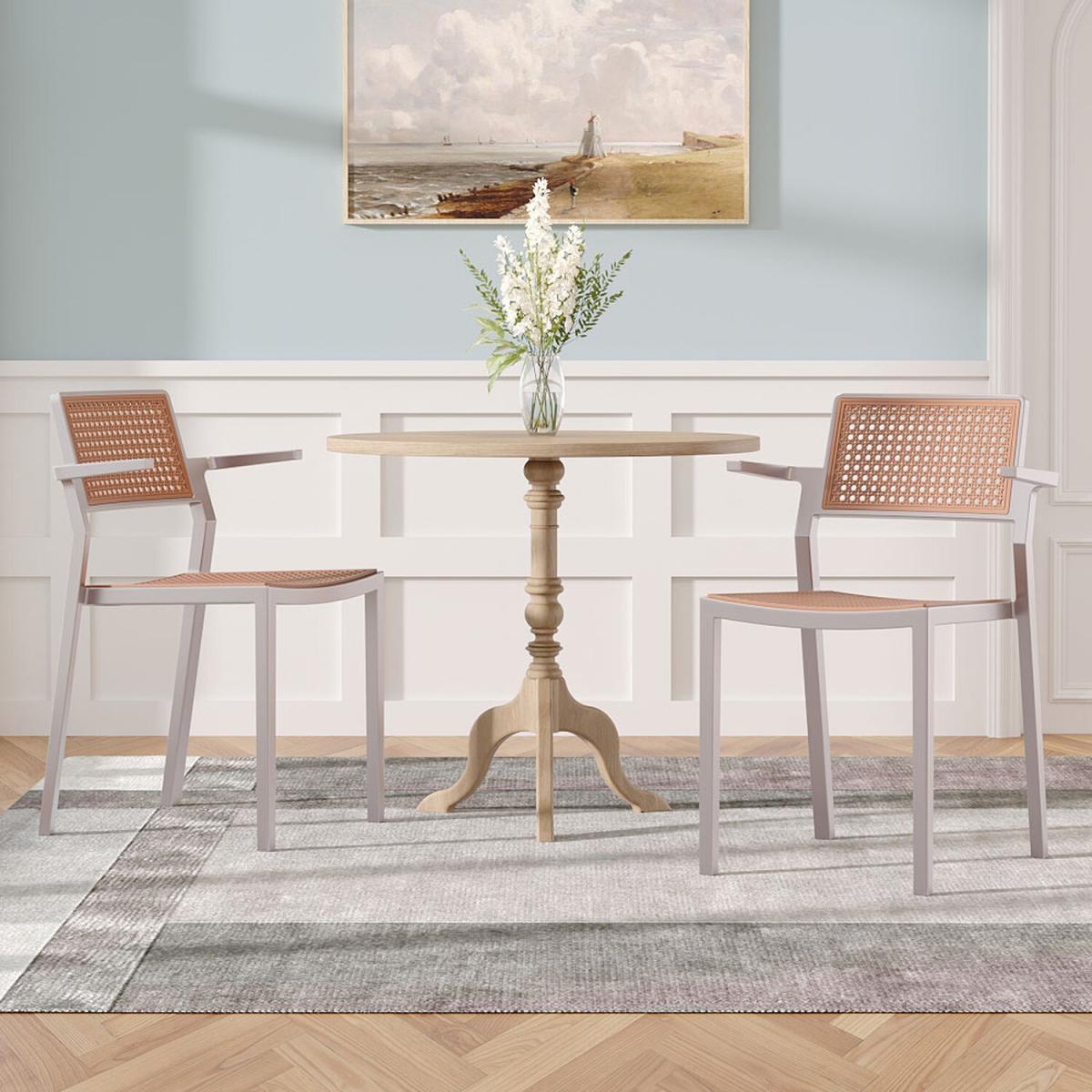 I’m really taken with these grey rattan-style chairs for their blend of durability and easy-care design. The polypropylene frame gives them a lightweight feel while the woven back adds texture without the maintenance of natural cane. They’re ideal for modern Scandi kitchens or a relaxed coastal dining area, but they’ll slot equally well into a minimalist urban flat. For styling, pair them with a pale timber table to accentuate the soft grey tone and add a simple linen runner for contrast. If you need a pop of colour, choose muted green or terracotta cushions. Their slender armrests also make them a good fit for compact spaces, keeping the room feeling open.