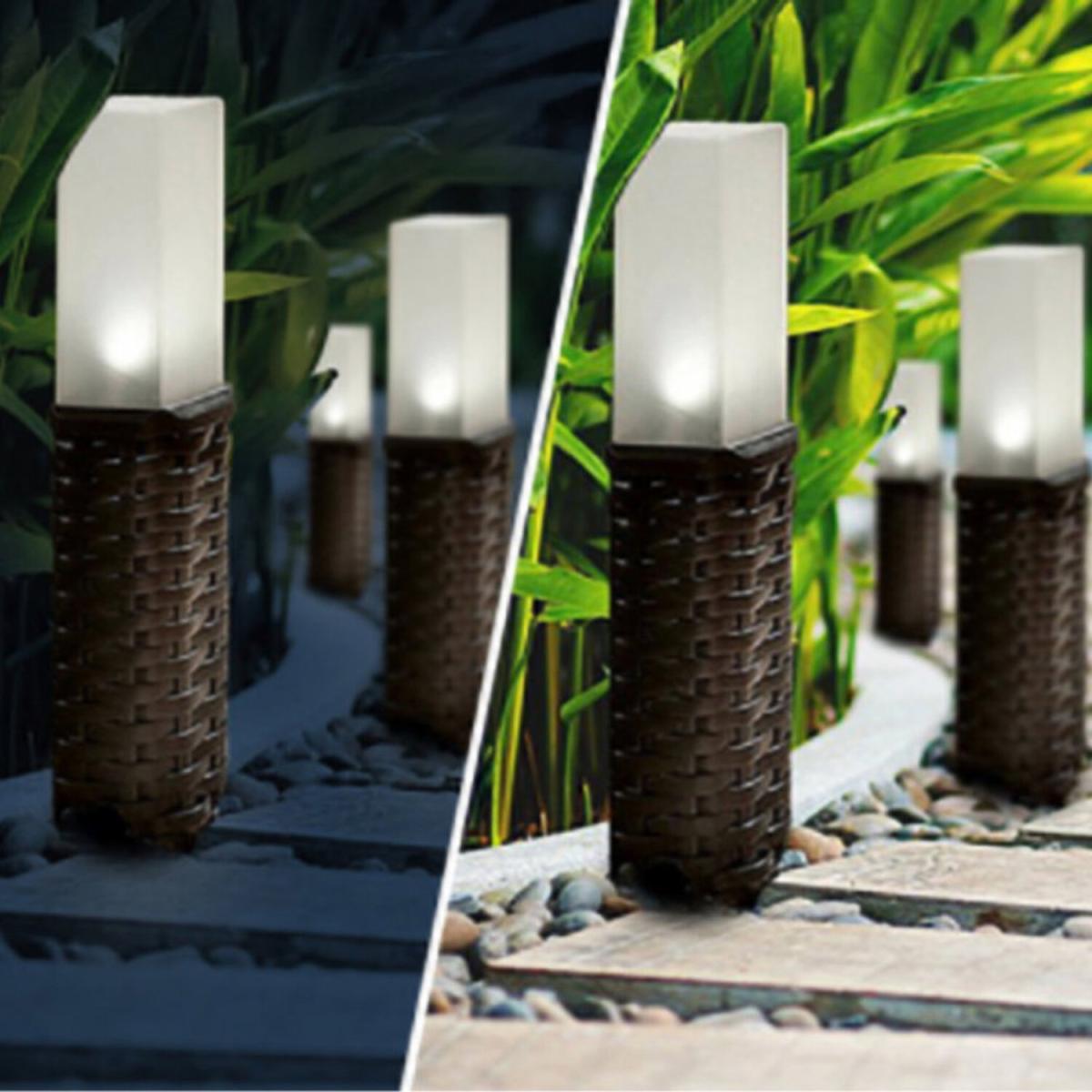 Introducing our enchanting Rattan Post LED Garden Lights. The perfect blend of rustic charm and modern illumination to elevate your outdoor space. Crafted with exquisite faux rattan detailing and powered by energy efficient LED bulbs, these garden lights effortlessly add a touch of sophistication and warmth to any garden, patio, or pathway. Set of 4 Rattan Solar Lights - Brown