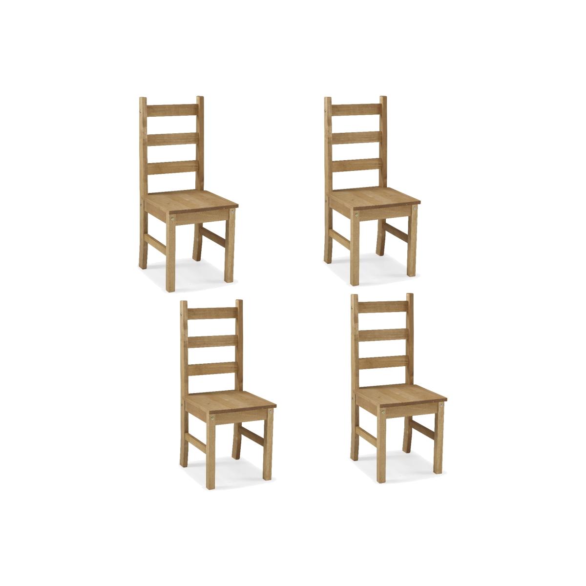 . This bundle includes. 4 x Brass Screws Dining Table - Emerson Features we love Set of 4 country style chairs with contemporary twist. Natural look inspired by clean and simplistic styling. Tall backs with three sturdy slats ensure comfort Versatile design can be paired with any dining table. Highly durable construction made from solid pine. Family friendly waxed finish for style that lasts. Matching pieces available in the Emerson dining range All about me. Create a warm and welcoming dining space with this pair of Emerson dining chairs. The tall chair backs with three slats give comfortable support subtly tapered back legs and the exposed brass screws all add to the rustic styling. They'll suit both modern and traditional settings leaving you free to choose the dining table of your choice. Made from solid pine with a waxed finish they'll withstand the demands of the family home for years to come as they're so durable and sturdy. They're easy to clean and maintain too which means they'll continue to look good for a long time. These chairs require simple self-assembly but come with easy to follow step by step instructions. Need to know. Number of chairs. 4 Each chair dimensions. W41.8 x D47 x H100 cm Colour. Natural Finish. Waxed Material. Solid pine Assembly required. Yes.
