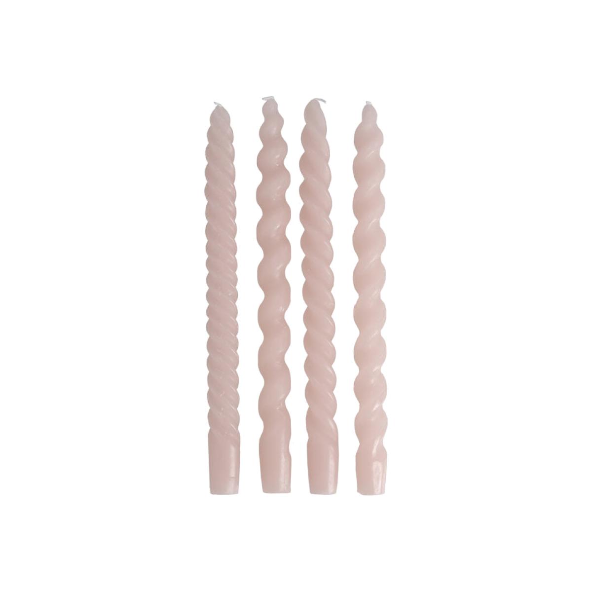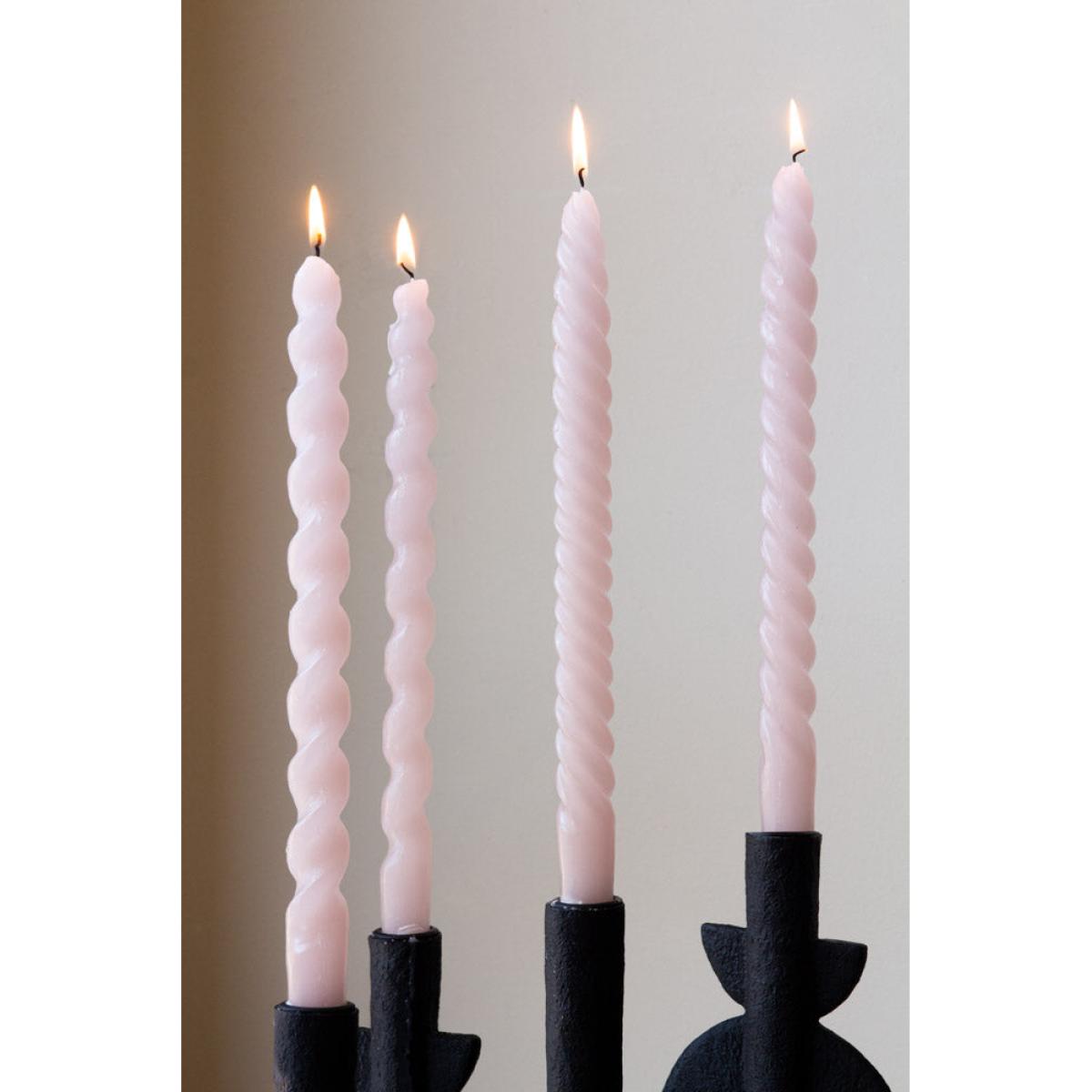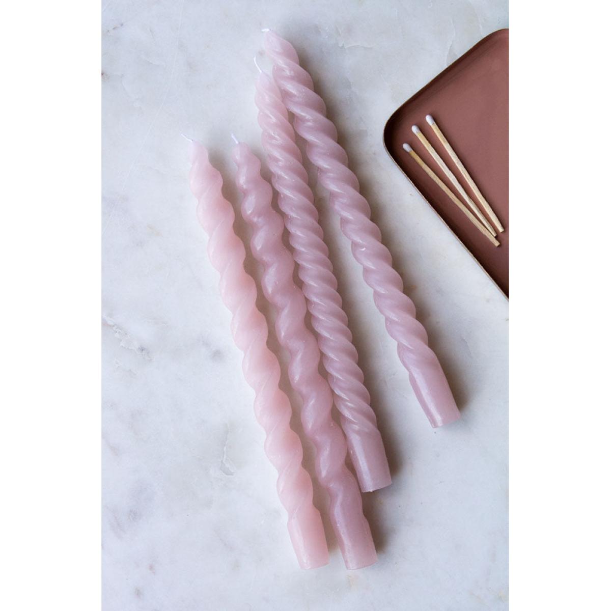About The Set Of 4 Spiral & Twisted Pink Dinner CandlesThe Set Of 4 Spiral & Twisted Pink Dinner Candles are perfect for taking your dining table styling to the next level! Designed as a set of 4, each candle features a unique spiral or twist design in a beautiful pale pink colour palette. Please note that the candles may require shaving down to fit into different candle holders. Why We Think You’ll Love The Pink Taper CandlesTwisted candles are a big trend right now and these stunning spiral dinner candles are a gorgeous example of this. Designed to be styled around your home, simply pair it with your most-fabulous candlestick holder and style in pride of place. You cannot beat the gorgeous glow of candlelight in the home, so we recommend displaying the glamorous Set Of 4 Spiral & Twisted Pink Dinner Candles everywhere from your dining table to a side table or coffee table in your living space.