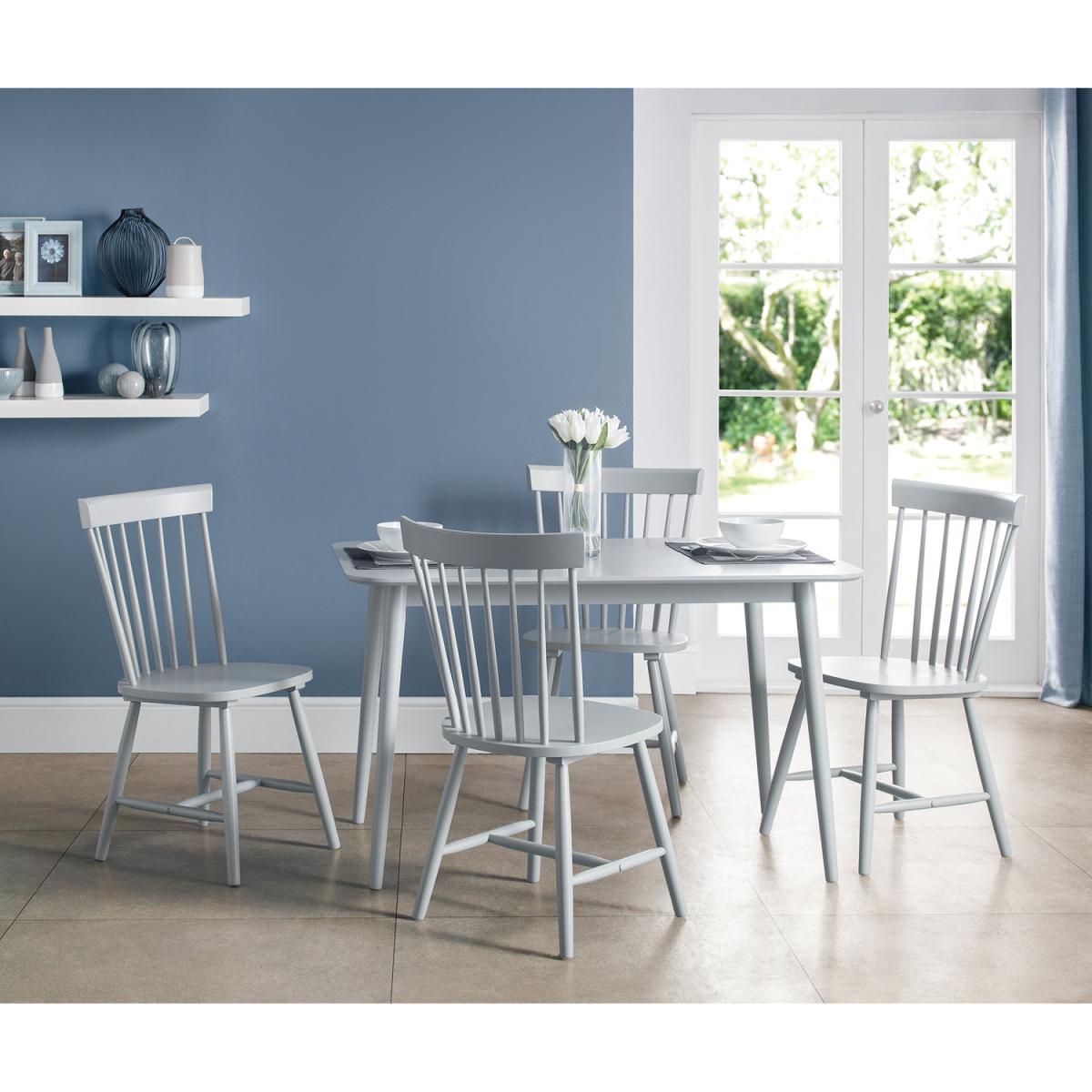 I’m a big fan of these grey Torino chairs for their clean, spindle-back silhouette and versatile mid-grey finish. They slot easily into Scandinavian, modern-farmhouse or contemporary schemes, grounding a dining table without overpowering the room. To style, pair them with a warm-toned oak or marble-effect table, then soften the look with simple linen seat pads or a slim cushion in muted stripes. Keep surrounding decor light and textured - think woven rugs or natural-fibre placemats - to balance the cool grey and add a welcoming feel.