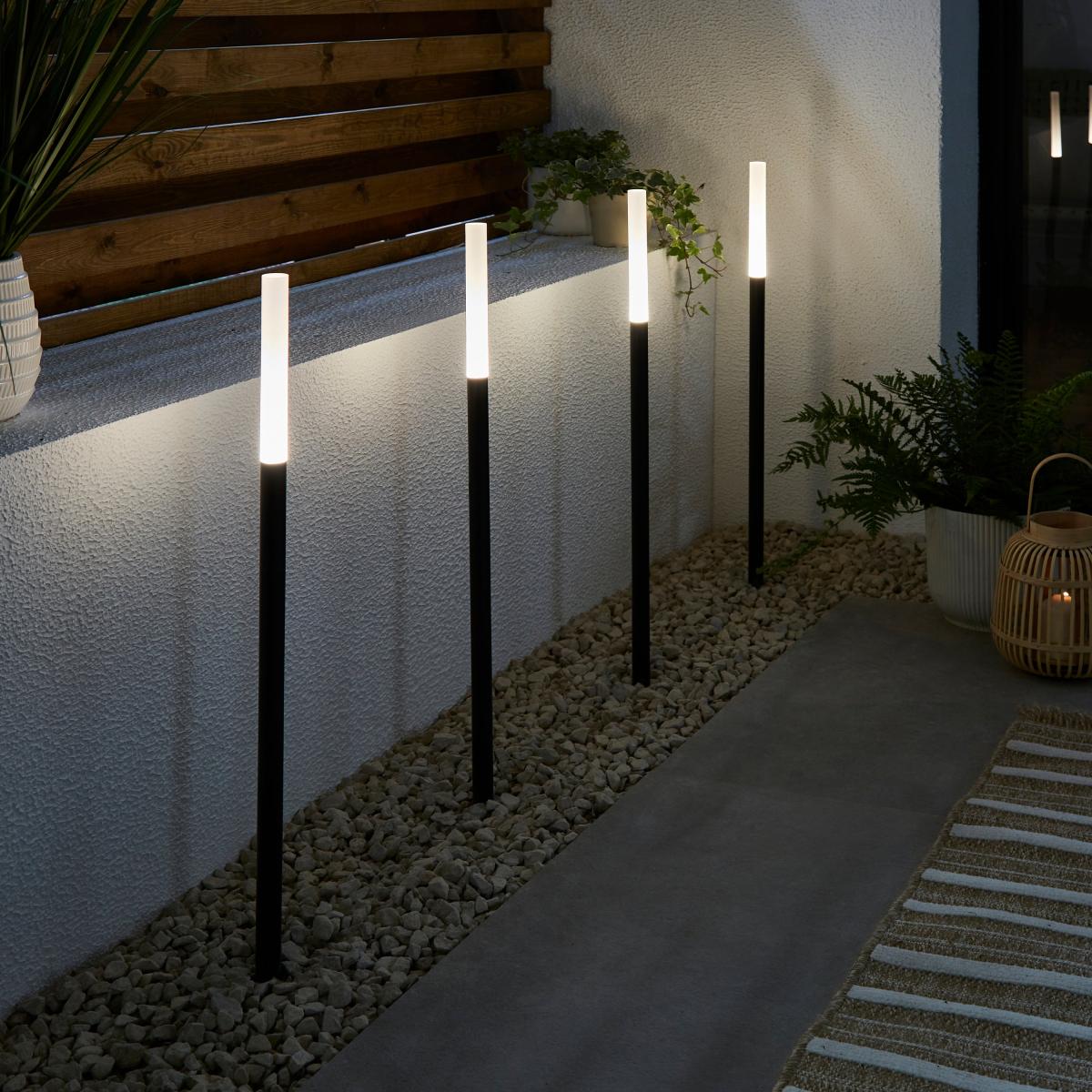 I love this set of four tube LED stake lights for their sleek, modern look and versatility. They work exceptionally well in contemporary garden schemes, adding subtle illumination along walkways or borders without overpowering the space. A practical styling tip is to cluster them at irregular intervals for a more organic feel or line them up neatly for a streamlined, minimalist aesthetic. These lights are also great for creating a cosy atmosphere on patios or decking areas-they’re unobtrusive yet highly functional, providing essential lighting while enhancing the overall design of your outdoor space.