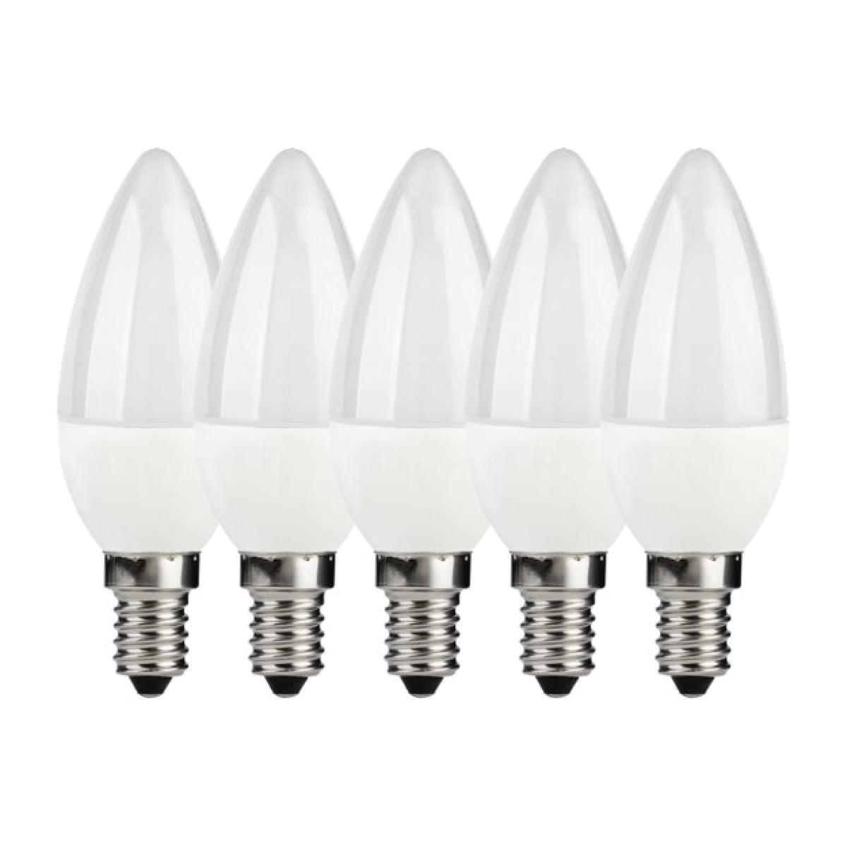 * Set of 5 * LED Candle Bulbs * Long-Lasting, Low-Heat Output * Soft, Warm Glow Create a cosy atmosphere with the Set of 5 5W SES LED Candle Bulbs. These long-lasting bulbs deliver a soft, warm glow with low heat output — ideal for chandeliers, wall lights, and snug spaces.