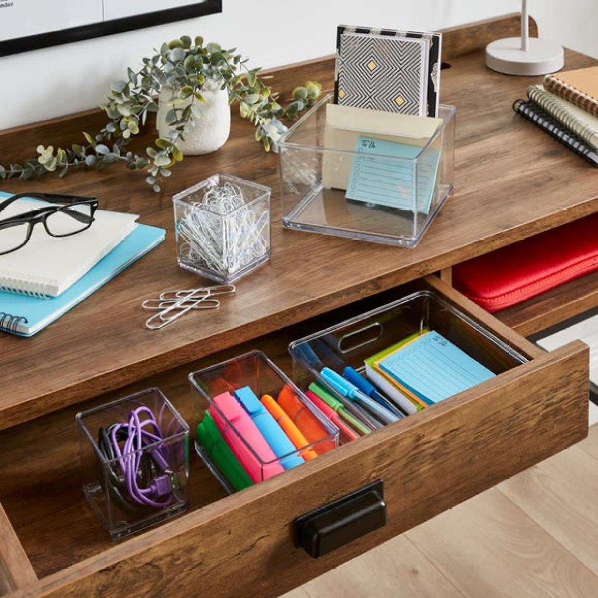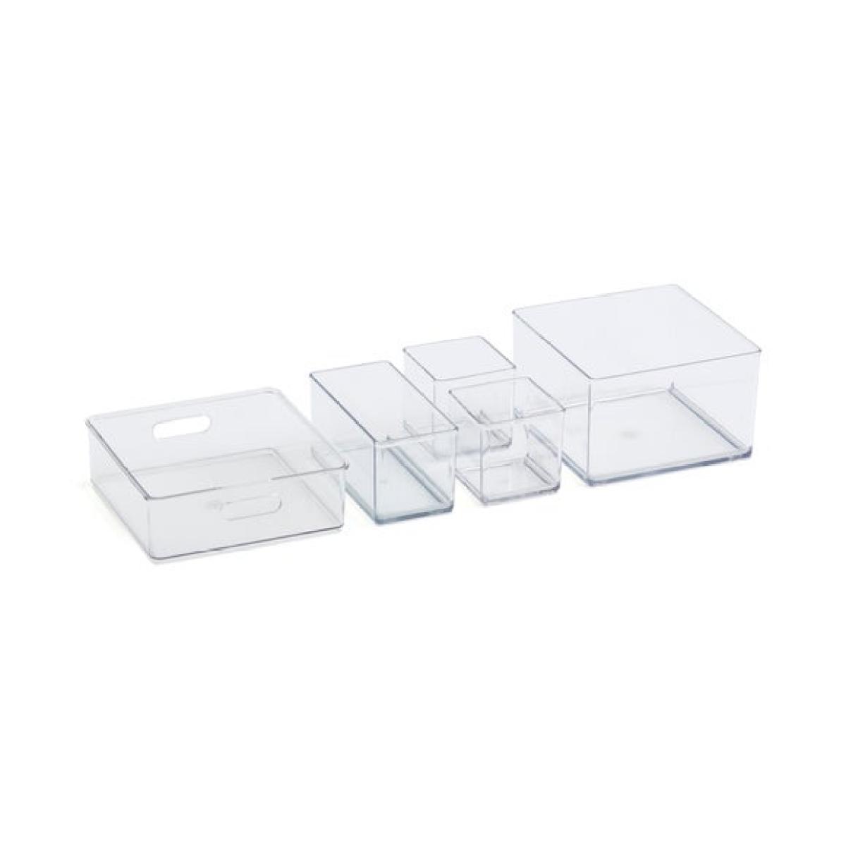 * Available in a range of sizes * Set of 5 * Perfect for home and office desks Keep your drawers neat and tidy with this handy Set of 5 Drawer Organisers. With a mix of small, medium and large sizes, they’re perfect for everything from paperclips to pens and sticky notes. Whether it’s your home office, kitchen drawer or dressing table, these clear organisers help you find what you need in seconds. Easy to clean and simple to slot into place, staying organised has never been easier. The clear finish keeps things looking tidy and modern, without hiding away what’s inside. A quick and clever way to bring calm to your clutter.