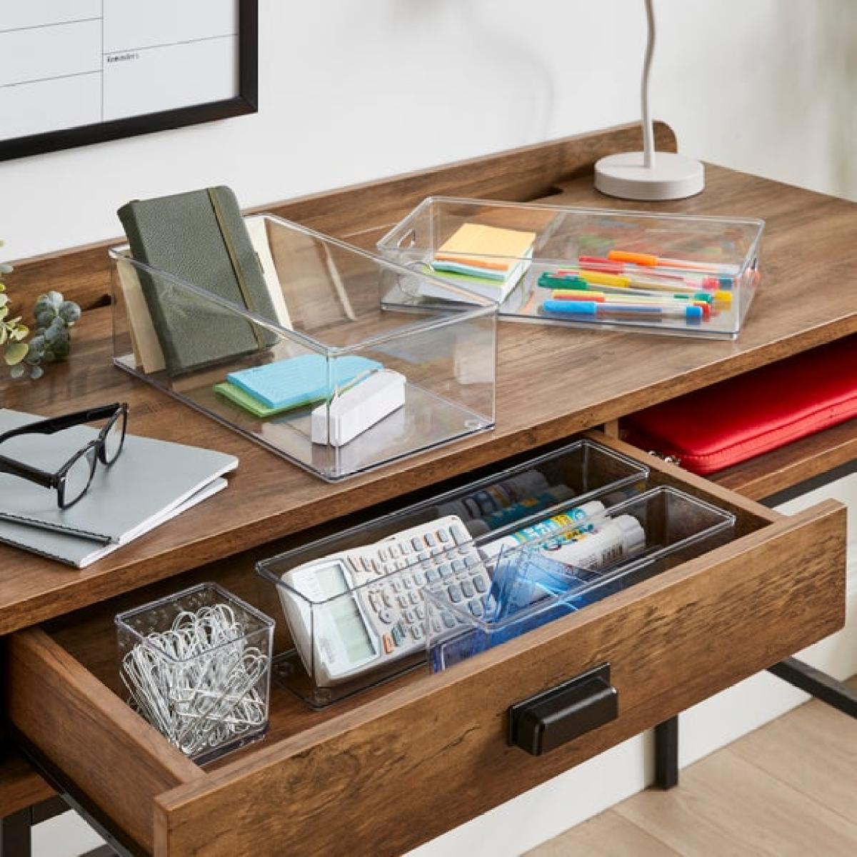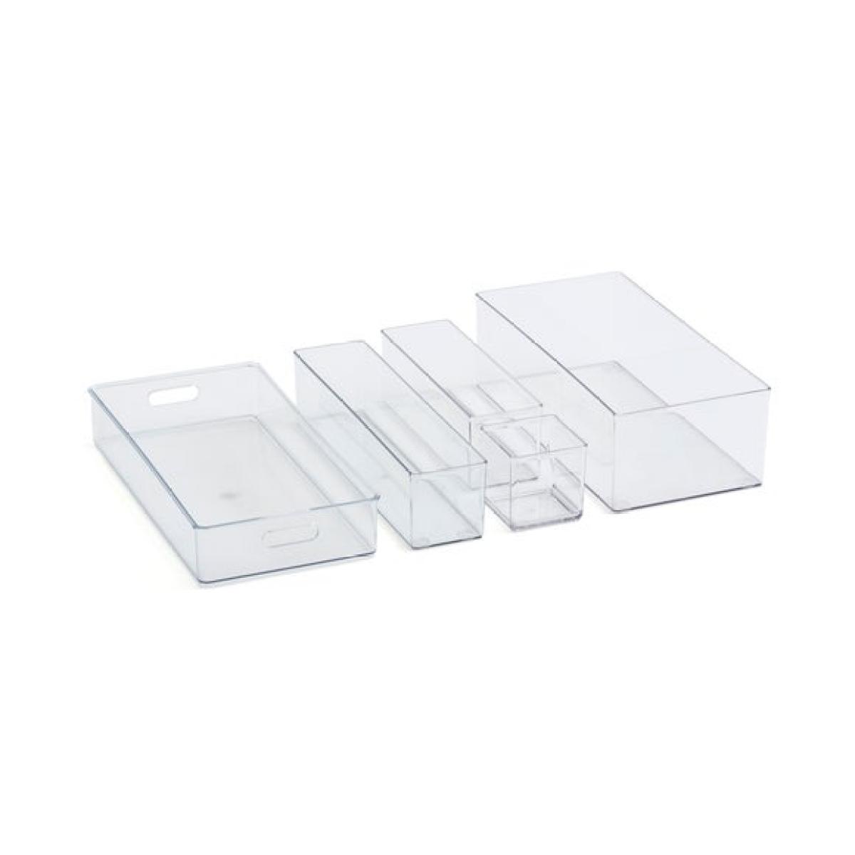 * Available in a range of sizes * Set of 5 * Perfect for home and office desks Keep your drawers neat and tidy with this handy Set of 5 Drawer Organisers. With a mix of small, medium and large sizes, they’re perfect for everything from paperclips to pens and sticky notes. Whether it’s your home office, kitchen drawer or dressing table, these clear organisers help you find what you need in seconds. Easy to clean and simple to slot into place, staying organised has never been easier. The clear finish keeps things looking tidy and modern, without hiding away what’s inside. A quick and clever way to bring calm to your clutter.