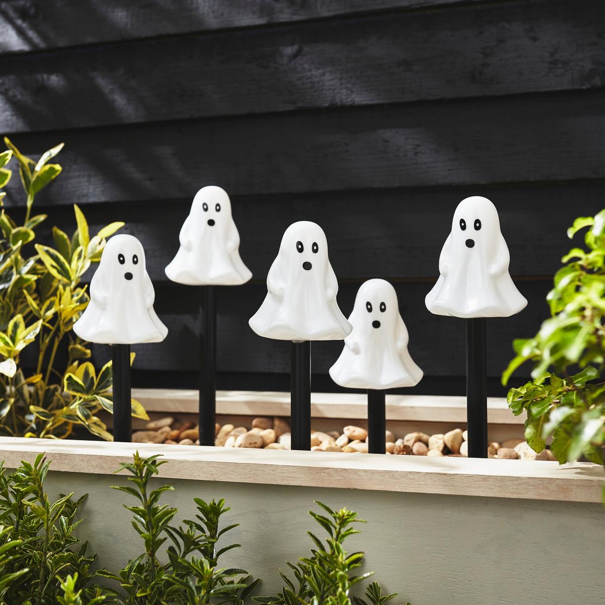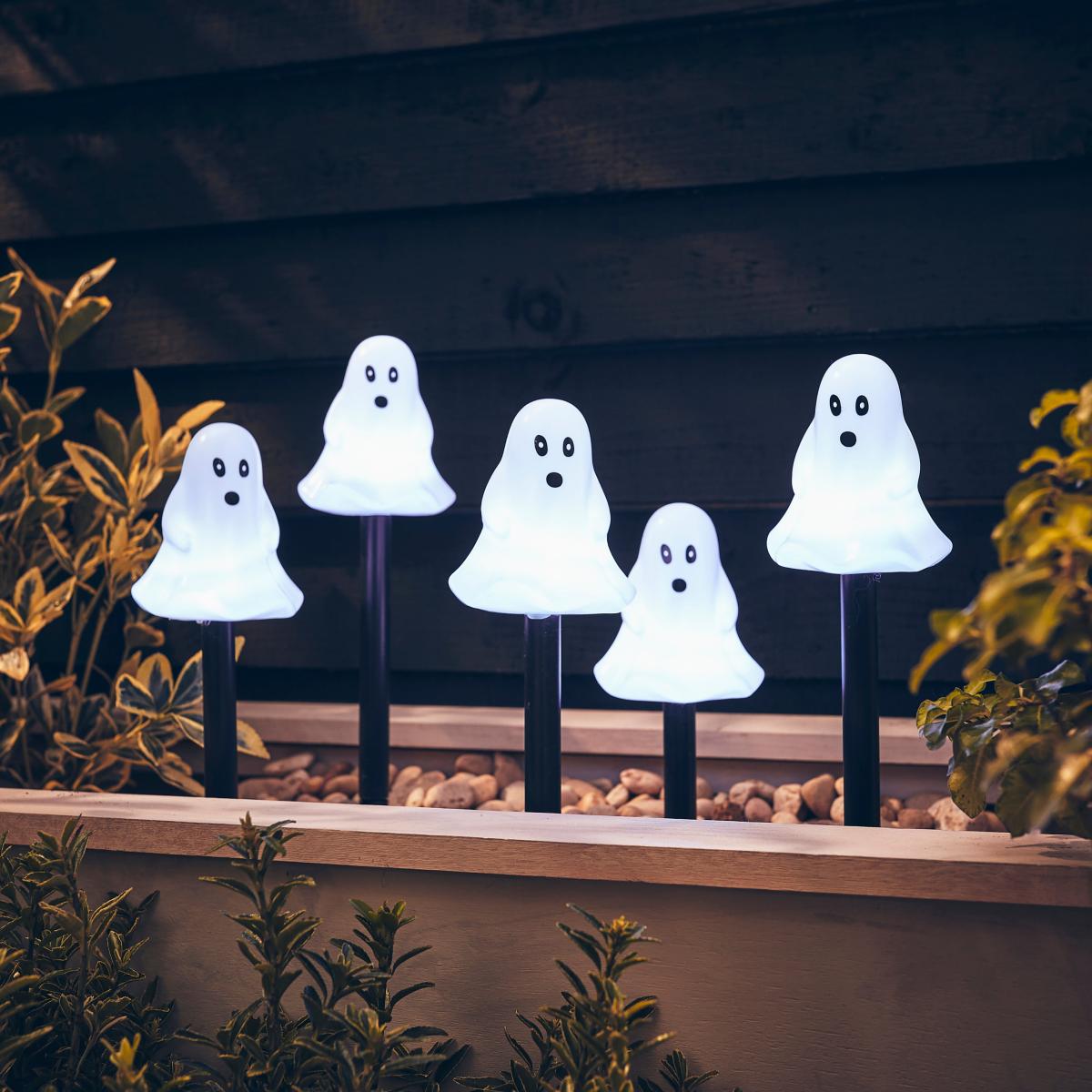 Set of 5 Ghost Stake Lights Black and White