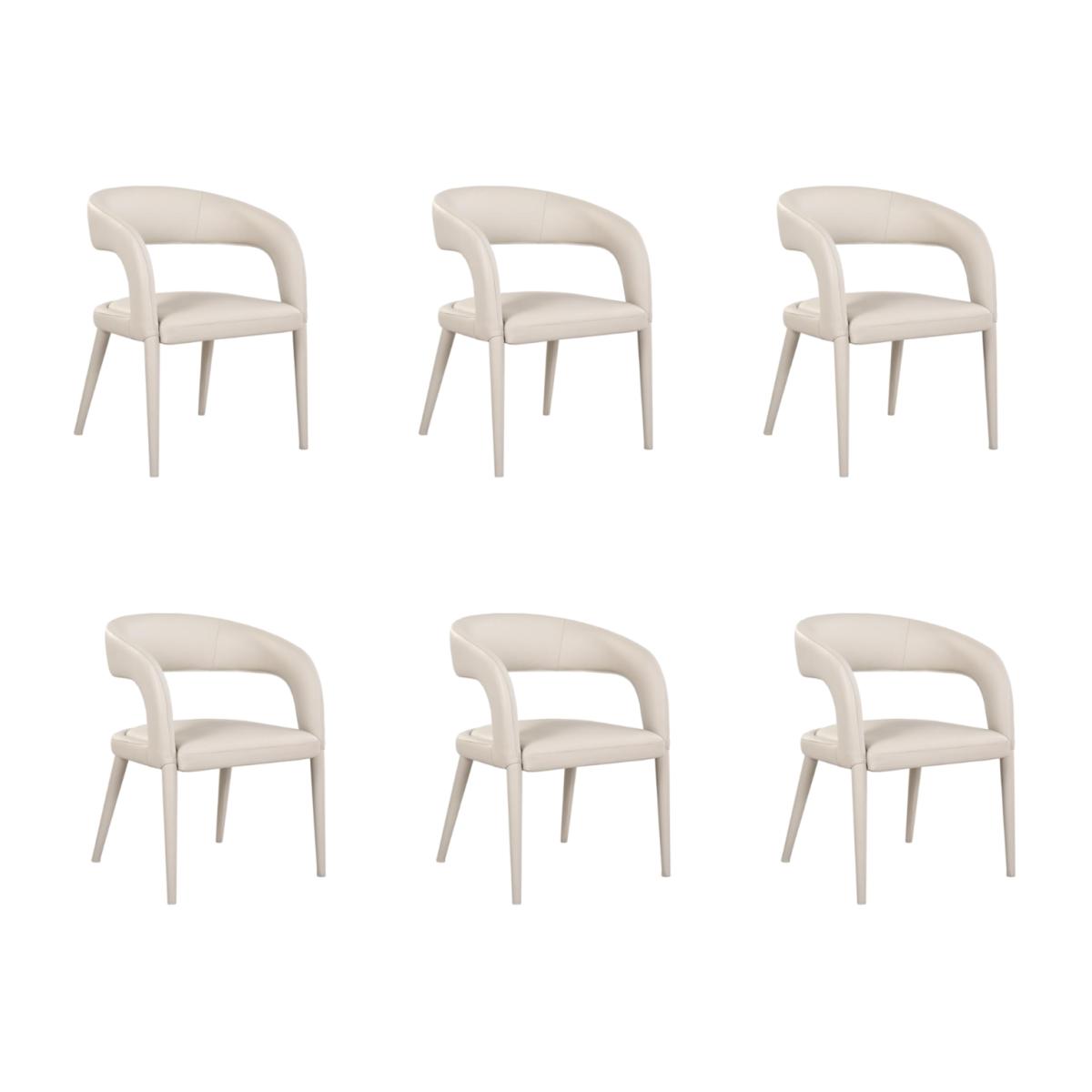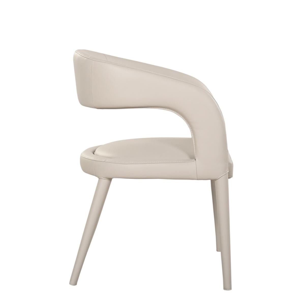 This fully upholstered dining chairs brings refined style and understated elegance to your space, with its soft beige real leather finish and sculptural curved silhouette. Designed to impress from every angle, it's a perfect fit for contemporary, luxe, or minimalist interiors. Fully wrapped in supple, high-quality leather, the chair boasts a smooth, continuous finish for a clean, designer look. The stitching is subtle and precise, adding to the elevated feel without distracting from its sleek profile. The gently curved backrest offers ergonomic support, while the foam-filled seat ensures lasting comfort, whether you're enjoying a quick breakfast or a long dinner party. With its muted beige tone and slim legs, this chair blends effortlessly with a variety of colour palettes, dining tables, and interior styles. It works beautifully as a standalone accent chair in a bedroom or hallway too. Sturdy metal legs and a solid internal frame make this chair as strong as it is stylish, giving you long-lasting use with a premium finish. Crafted for those who appreciate timeless materials and high-end details, these beige leather dining chairs brings effortless sophistication to any setting. Its sculptural form is grounded by sturdy metal legs, offering both visual balance and enduring support. The sleek, durable base complements the chair’s luxurious finish, making it as practical as it is elegant. Whether you're curating a refined dining space or looking to elevate a quiet corner, this piece is an instant focal point. Style it in a dining room for a coordinated look or use it solo in a bedroom, hallway, or home office as a functional yet stylish accent that speaks to your sense of modern design.