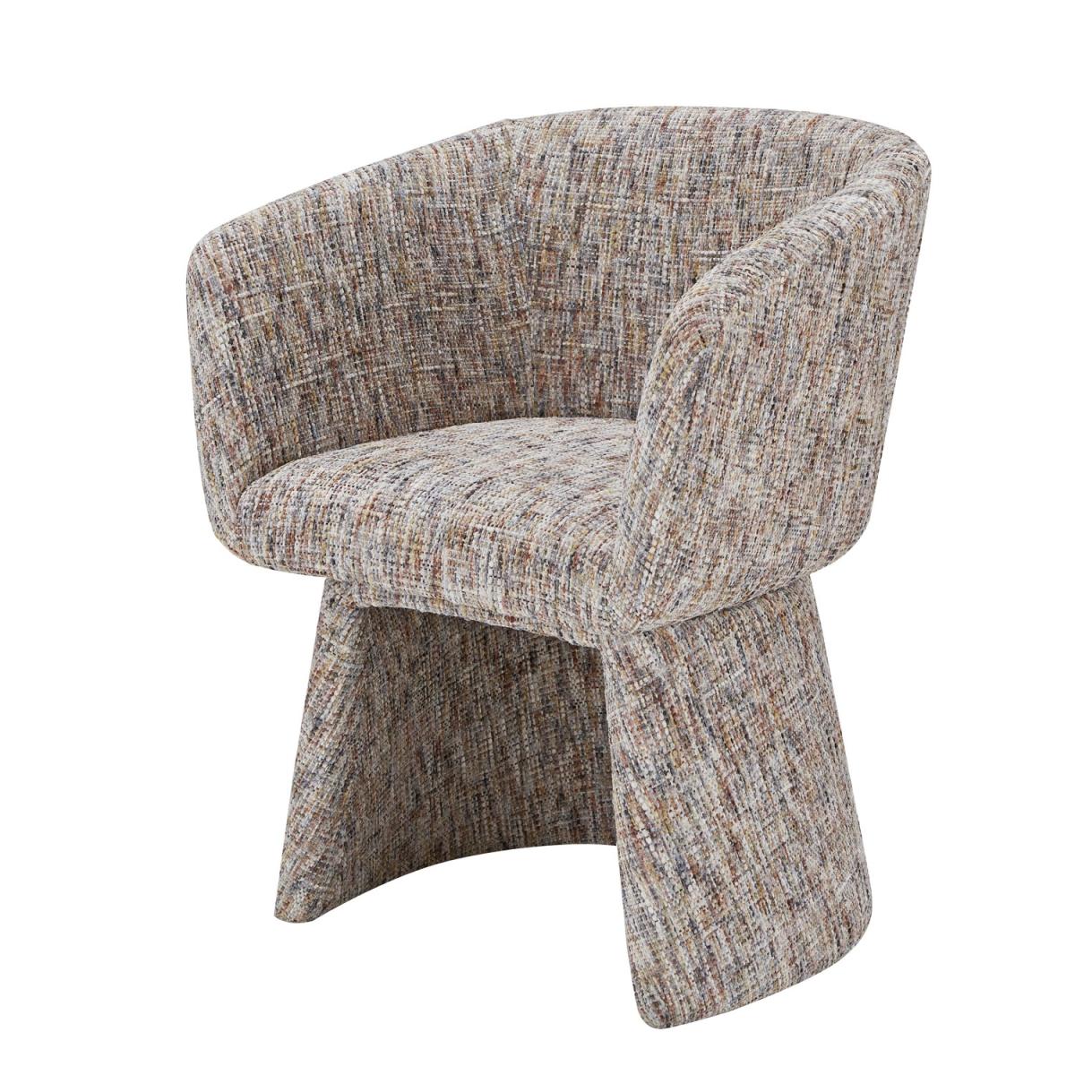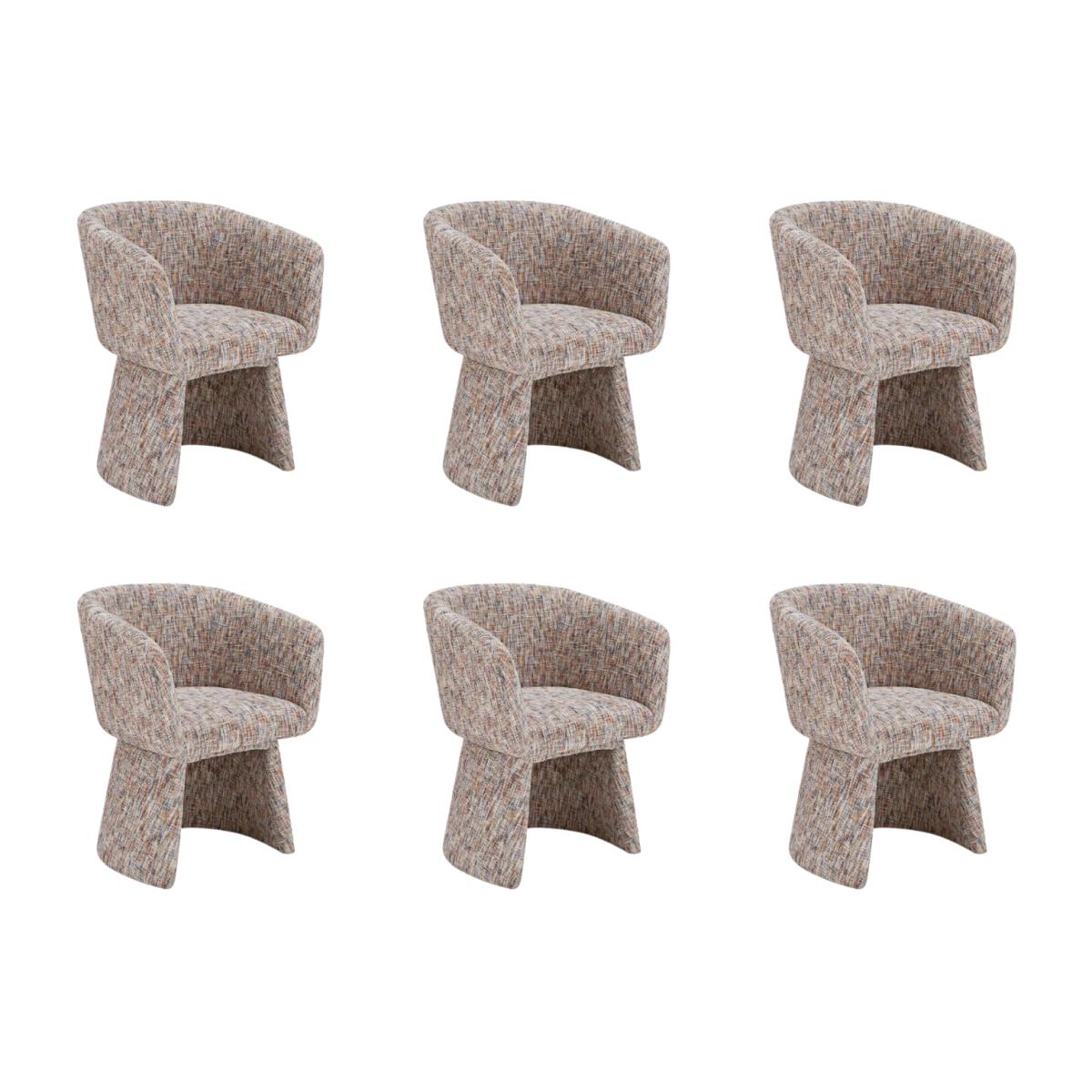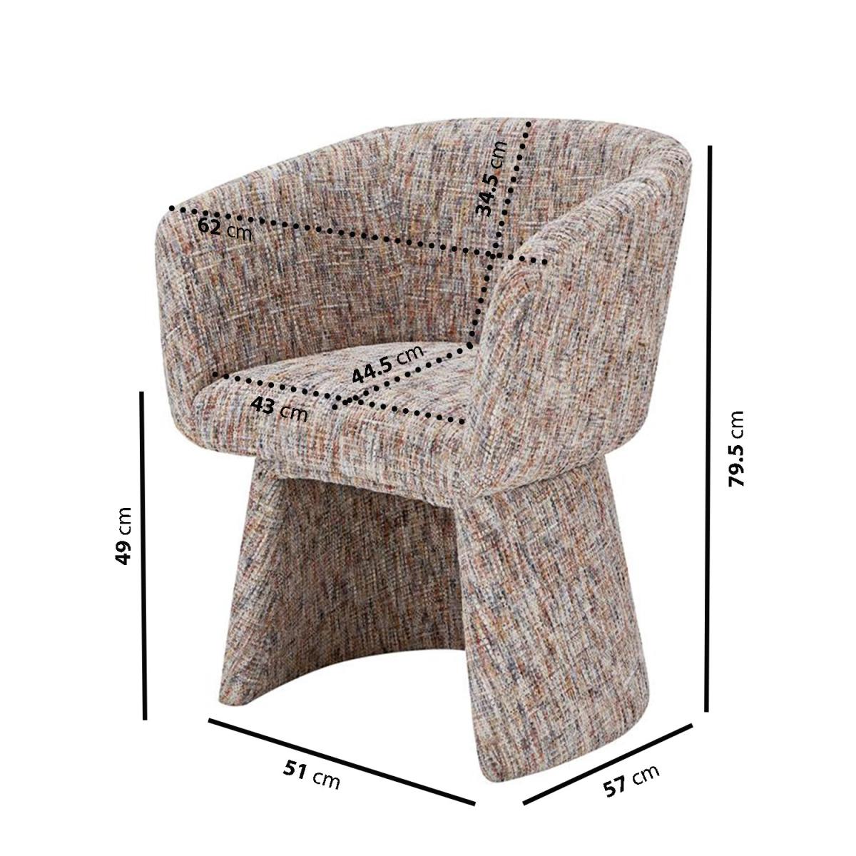 Allows for smooth and easy movement, perfect for dynamic dining settings or multitasking. Adds a retro-inspired and playful look, enhancing any space with a pop of personality. Offers superior comfort with a curved backrest and integrated armrests, ideal for relaxed dining. The soft and durable chenille fabric provides a cohesive and luxurious look. A unique design that balances retro charm with contemporary elegance, fitting various décor styles. Built with high-quality materials to ensure long-lasting performance and style. Introduce bold style and modern comfort to your dining area with the Cher Multi Colour Swivel Tub Dining Chair. This chair features a 360-degree swivel base, offering flexibility and ease of use. Upholstered in vibrant multi-colourway chenille fabric, it brings a retro-inspired charm while maintaining a contemporary aesthetic. Its tub-shaped design, with a curved backrest and integrated armrests, provides exceptional comfort and support, making it ideal for long meals or casual gatherings. Number of Chairs: 6 Dimensions:W62 x D57 x H79.5cm Weight: 15.14 kg Max supported weight: 150 kg Colour: Multi Coloured Finish: Fully Upholstered Material: Chenille Fabric Assembly required: No Packed dimensions: W62 x D58 x H81 cm For domestic use only. Domestically UKFR certified.