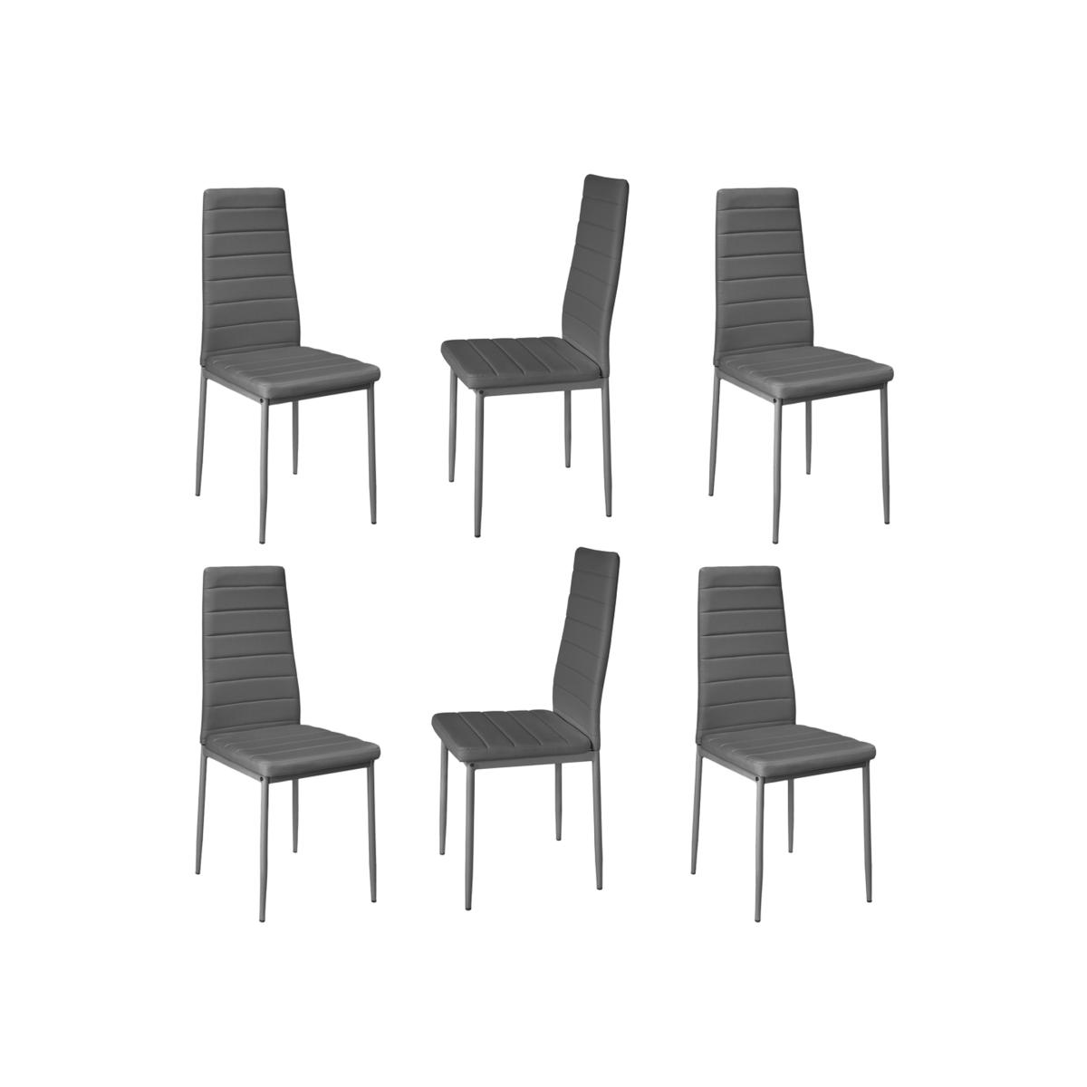 Set of 6 Faux Leather High Back Dining Chairs - Grey