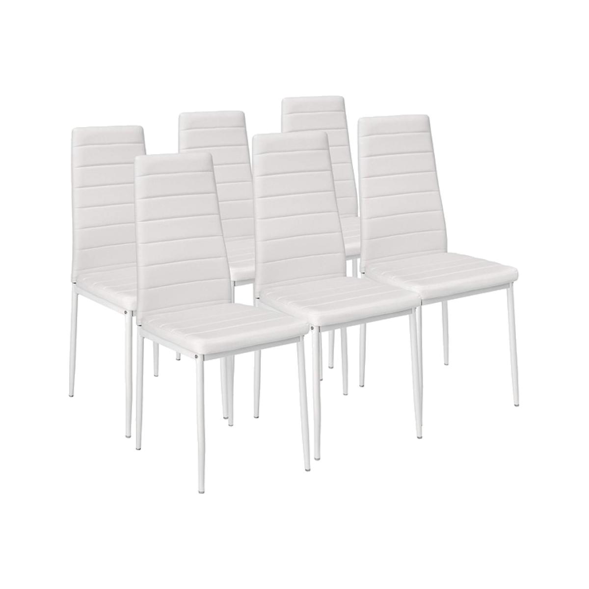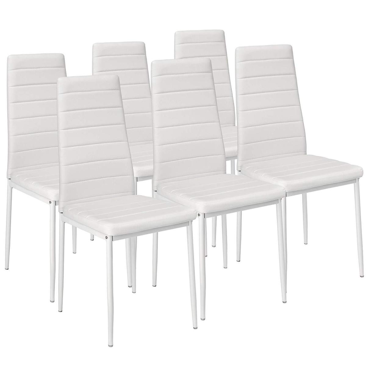 Set of 6 or 4 White Faux Leather Padded Chairs - White / 6