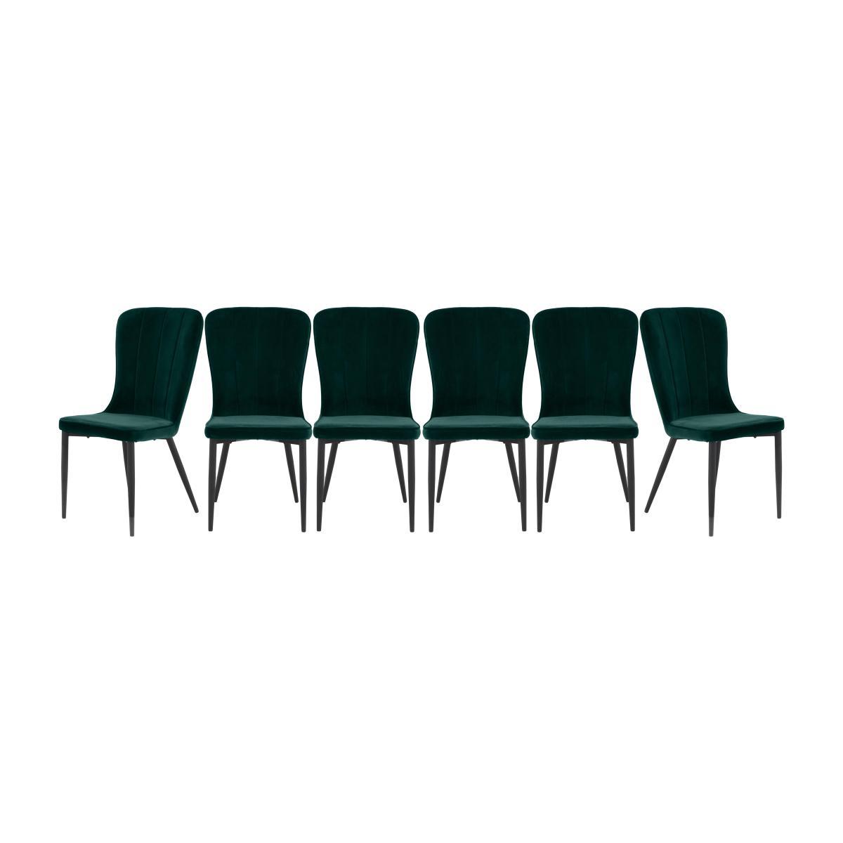 Stunning set of six velvet dining chairs in a choice of three beautiful colours, with black or chrome legs. Dine in luxurious comfort. Why you’ll love it. Elegantly fluted, shaped backs. Exquisitely tailored and softly cushioned. Upholstered in tactile velvet. In contemporary granite, dark green or blush velvet. Polished chrome or matt black metal legs. The chairs coordinate perfectly with the Olympia round tables. If you love the look of Raph, but would prefer faux leather, check out our. Folsom chairs. What you need to know. The black or chrome finish legs are made of strong steel. Cushioned seats and backs are foam-filled. Flattening and shading of heavy wear areas on velvet is unavoidable. Pile fabrics may be vacuumed lightly using the curtain attachment. Brush regularly in the direction of the pile with a soft brush.
