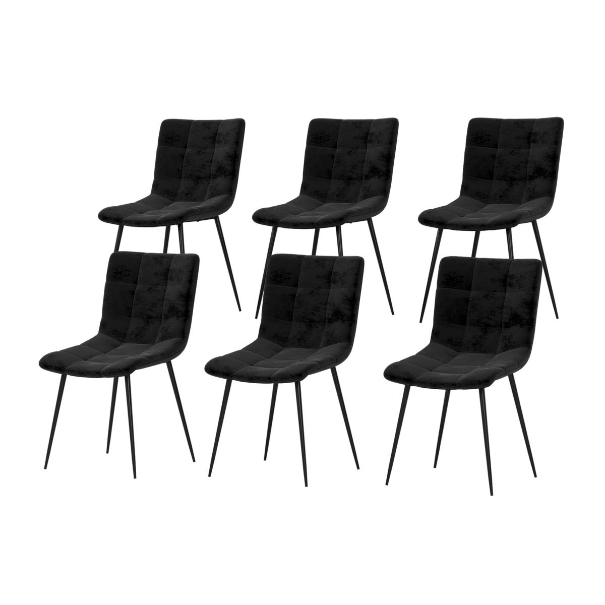 Black Kitchen Dining Table And 6 Black Tufted Velvet Chairs Set Of 6 - Black