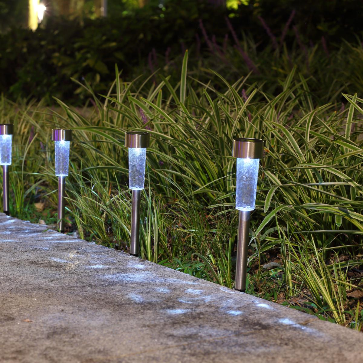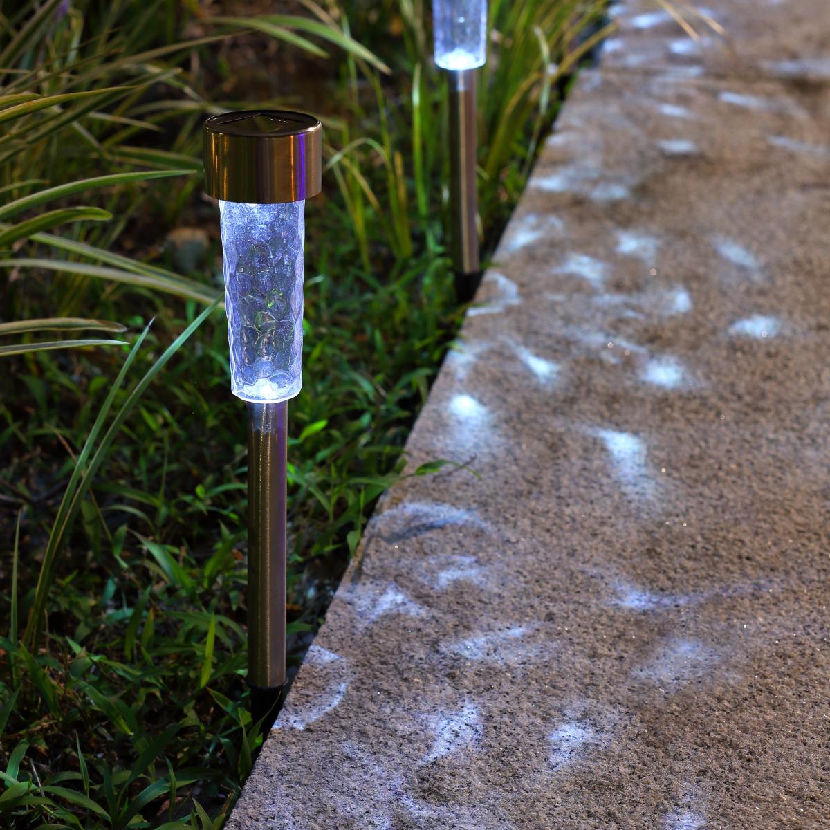 I love this set of six solar stake lights for adding a sleek, modern touch to outdoor spaces. Their silver finish and white glow make them versatile, suiting contemporary gardens or even classic exteriors with a minimalist twist. They work well along pathways, around patios, or accenting flower beds, offering practical lighting without the fuss of wiring. For styling tips, try spacing them evenly along a walk to create a lined effect or clustering them to highlight specific features like a feature tree or pond. They're a simple yet effective way to extend the use of your outdoor space into the evening, giving both functionality and a stylish, understated look.