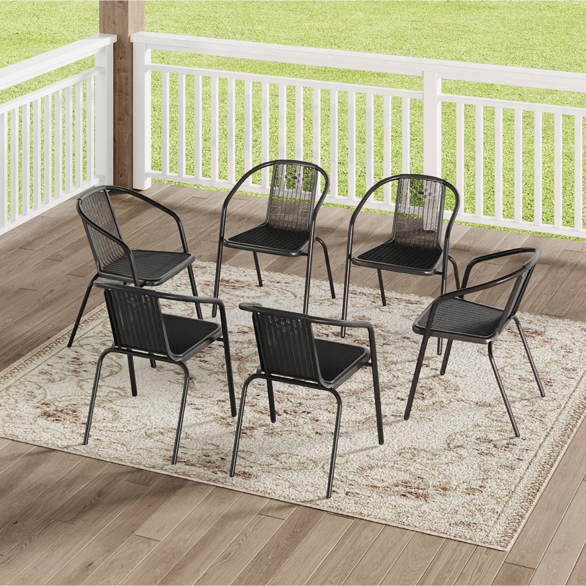 Set of 6 Stackable PE Rattan Garden Chairs - Black