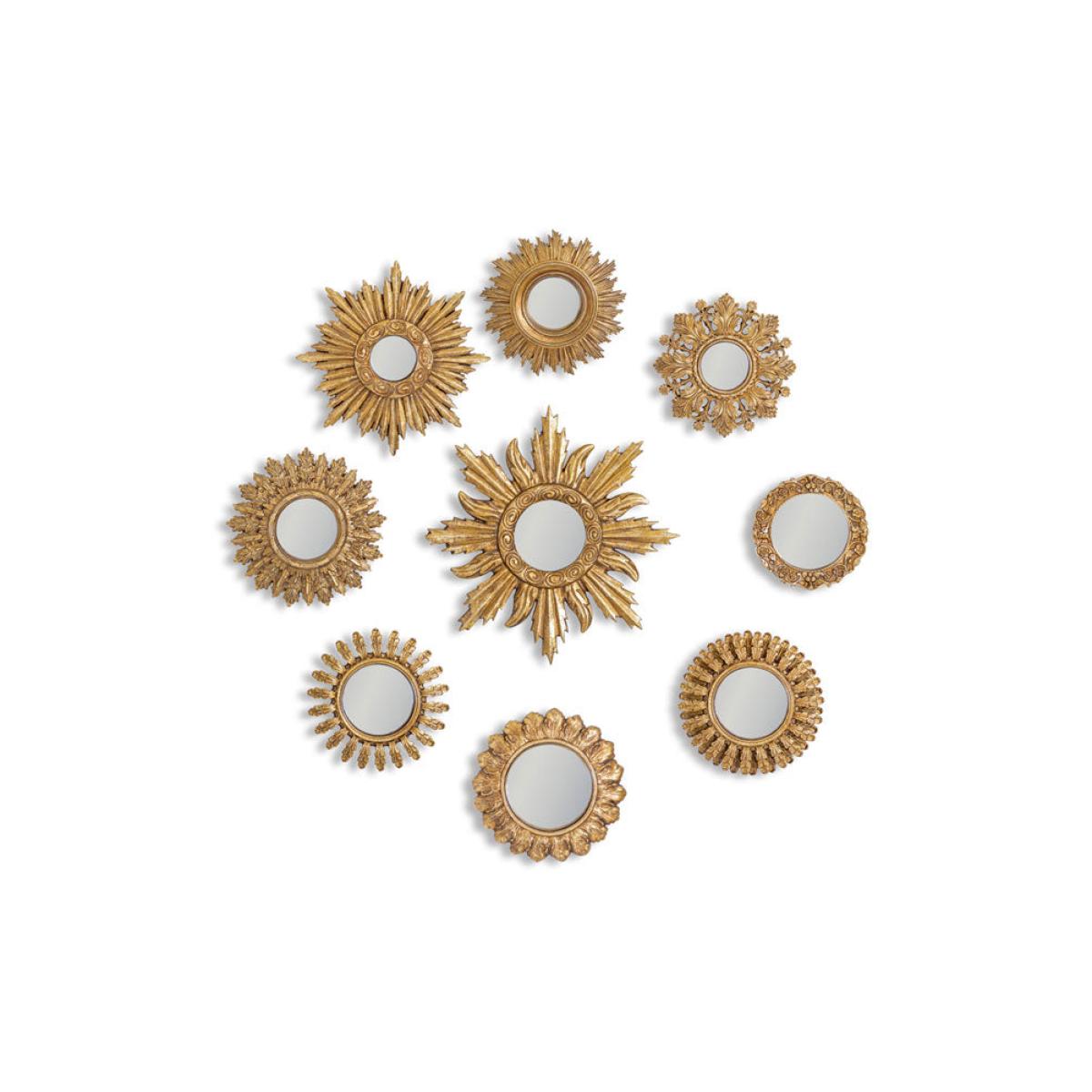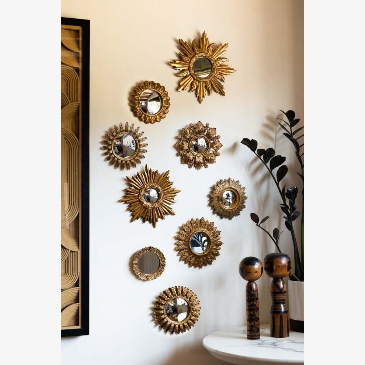 This beautiful collection of mirrors embodies pure luxury and elegance. Each exquisite mirror features a unique, opulent frame with intricate gold detailing, making them super-pretty decorative pieces whether you choose to dot them around the house or display together as a dazzling wall art arrangement. What's beautiful about them is that while they're functional ('Mirror, mirror...'), they're also a work of art. Their dramatic and rich-looking frames will add a feeling of grandeur to your space, beautifully reflecting light and enhancing the charm of your home. Whether you're adding a touch of glamour to your hallway, living room, bedroom or even your bathroom, this Set Of 9 Assorted Ornate Gold Framed Mirrors brings a timeless beauty and luxury aesthetic to your space in a way you'll fall in love with. Just gorgeous. - Set Of 9 Assorted Ornate Gold Framed Mirrors - Measures: W18cm x H18cm x D2cm, W25cm x H25cm x D1.4cm, W30cm x H30cm x D1.7cm, W18cm x H18cm x D2cm, W19.5cm x H19.5cm x D1.7cm, W22cm x H22cm x D2.2cm, W19.5cm x H19.5cm x D1.7cm, W19.5cm x H19.5cm x 2.4cm, W13.7cm x H13.7cm x 1.8cm - Material: Resin, Glass