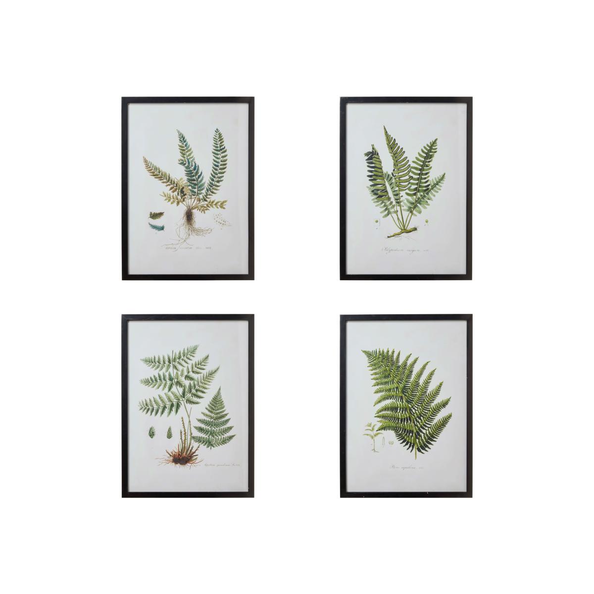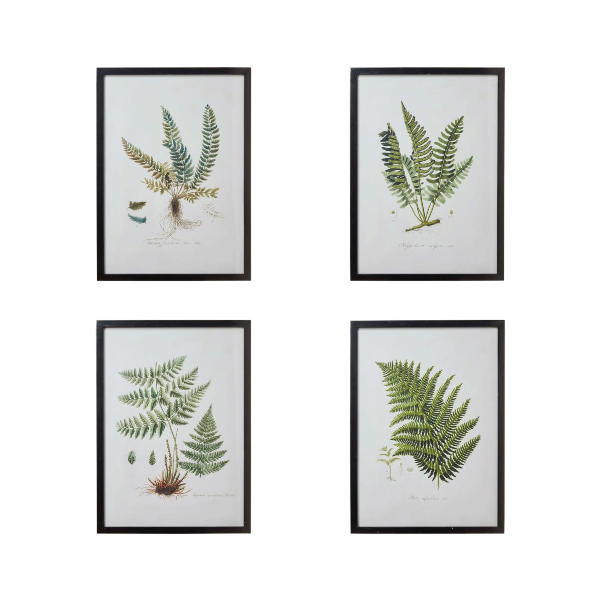A set of four framed botanical prints, based on 19th-century scientific illustrations, each depicting a different species of fern with their latin name inscribed underneath. Each of the prints comes mounted, glazed and framed in a smooth black frame. Set of Four Fern Framed Prints - Black