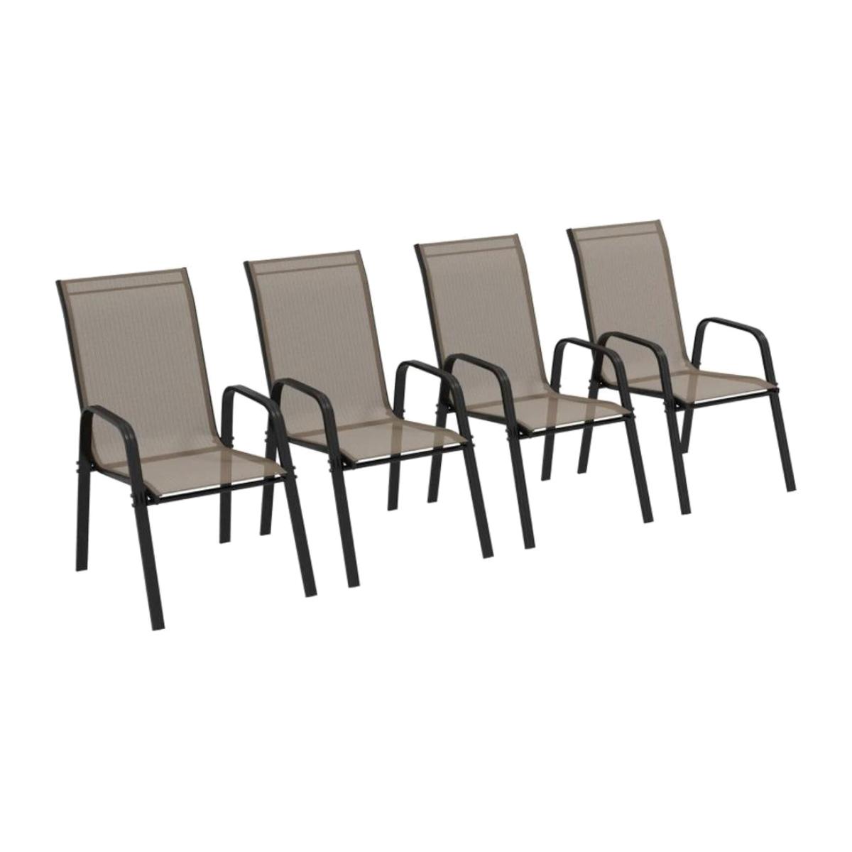 The high back and armrests support your body. The breathable mesh fabric is comfortable. The stackable design makes it compact for easy storage. A set to bring your favourite people together outdoors.