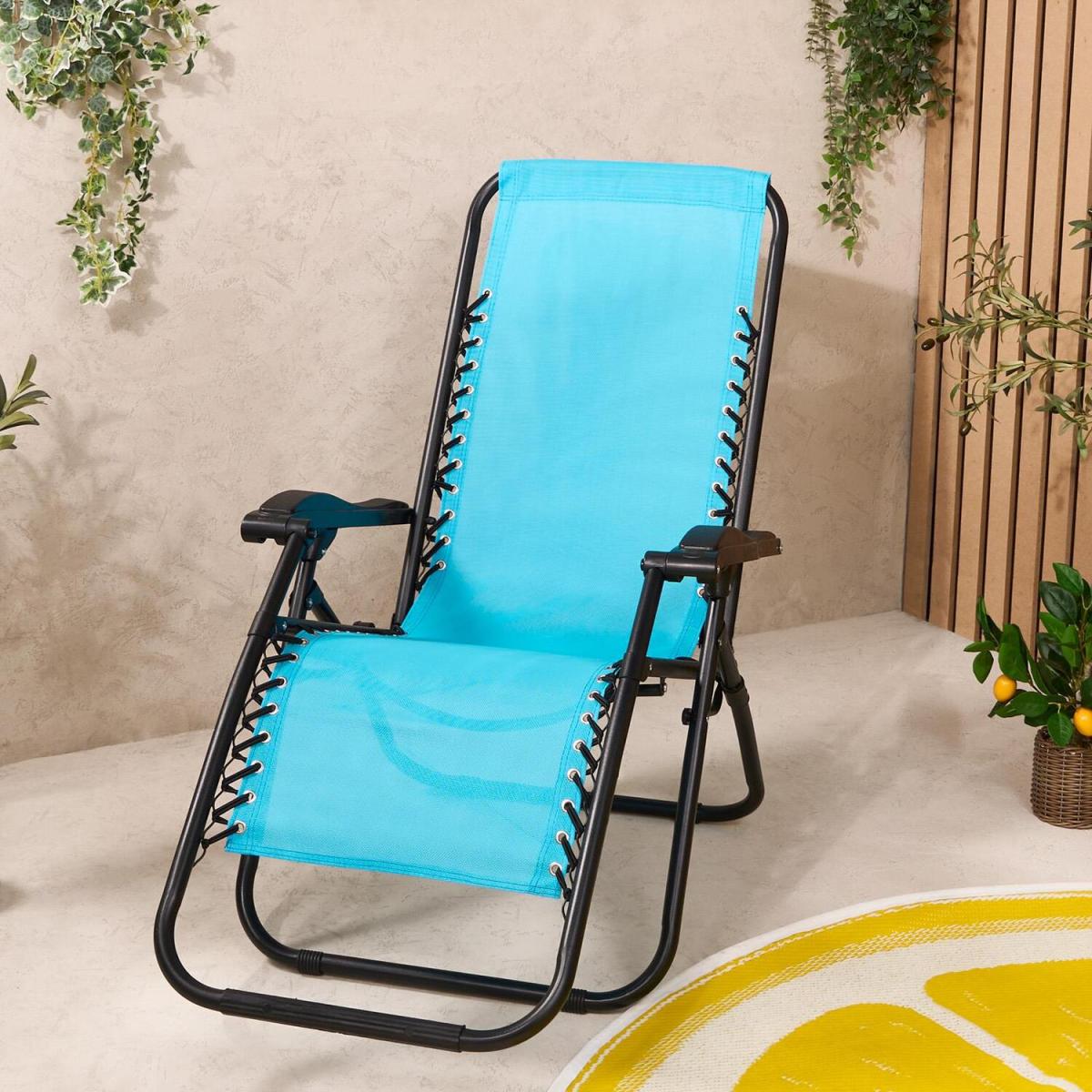 Set Of Garden Gravity Folding Sun Lounger - Sea Blue