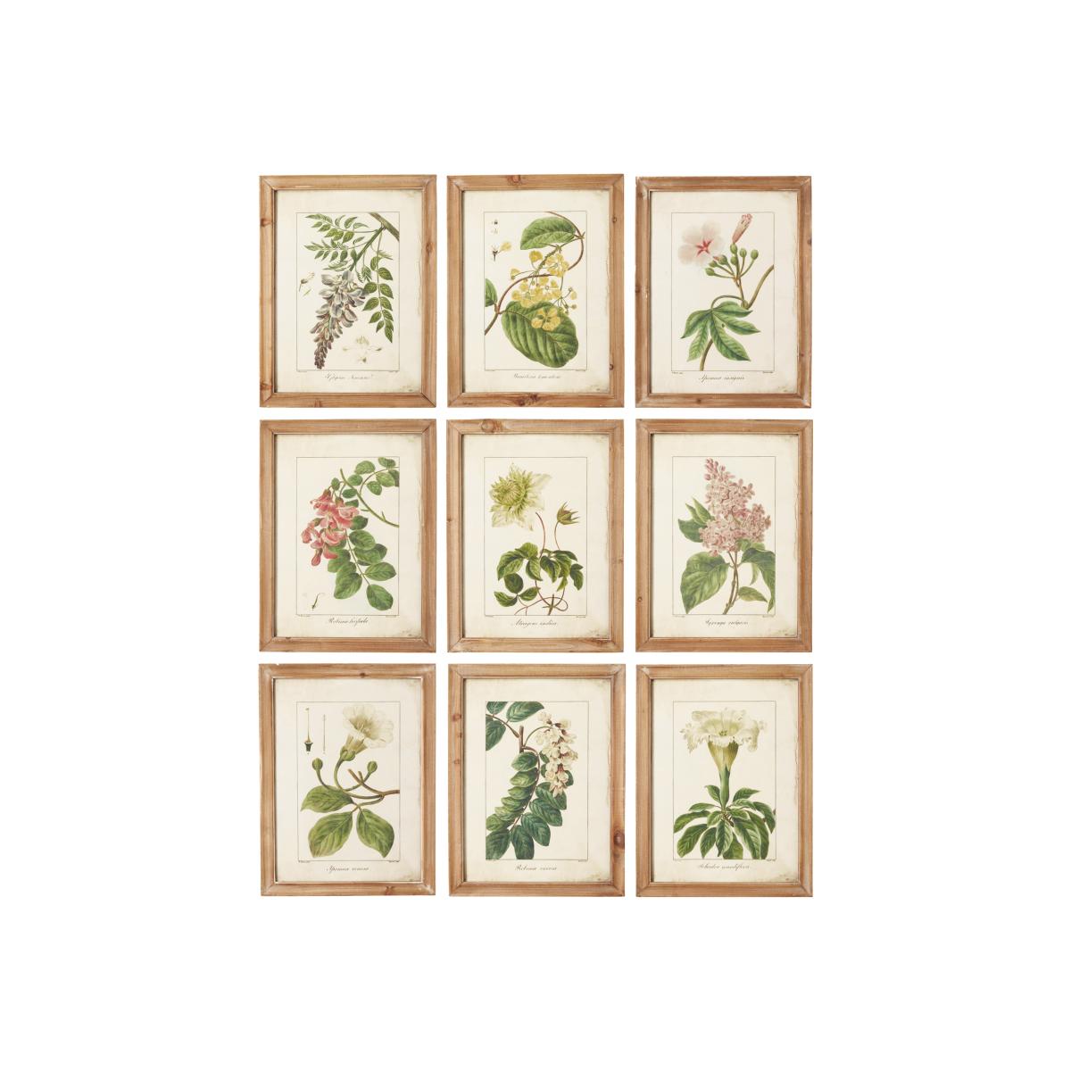 A set of nine framed prints, based on 19th-century scientific illustrations, each of these wood-framed images - which are printed on antique-effect paper, and identified with their Latin names beneath - features a different flower or plant. Flower varieties shown include lilac, rose acacia, clematis and chalice vine. Hung together, they make a striking display of wall art in a country home, but these pieces are equally effective combined with other art work, or even seen individually. Set of Nine Summer Garden Framed Prints- Brown