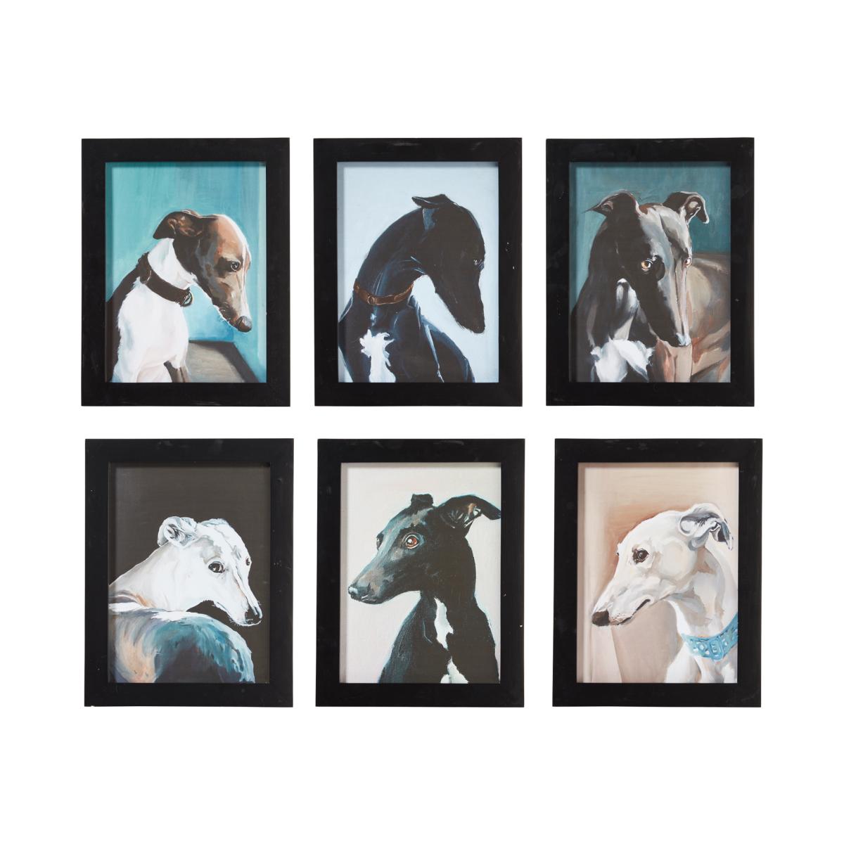This set of six whippet print portraits offers a charming and contemporary addition to any interior. I love how they bring a playful yet refined touch, making them versatile for both modern and eclectic spaces. They work particularly well in living rooms or hallways, where their grouped arrangement can create a stylish focal point. For practical styling, consider framing them with matching or contrasting colours to complement your decor - black frames for a sleek, modern look, or natural wood tones for a warmer finish. To keep the vibe fresh, hang at eye level in a grid, and pair with minimal accessories to let the artwork shine. Overall, it’s a great way to add personality and a touch of canine character to your space.