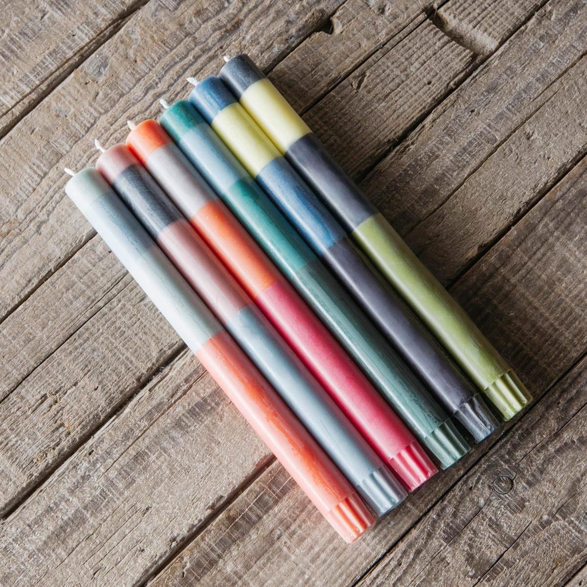 Mix and match your candles to suit your mood with a set of six assorted dining candles hand-dipped in all the colours of the rainbow and packaged in a recyclable Kraft box.