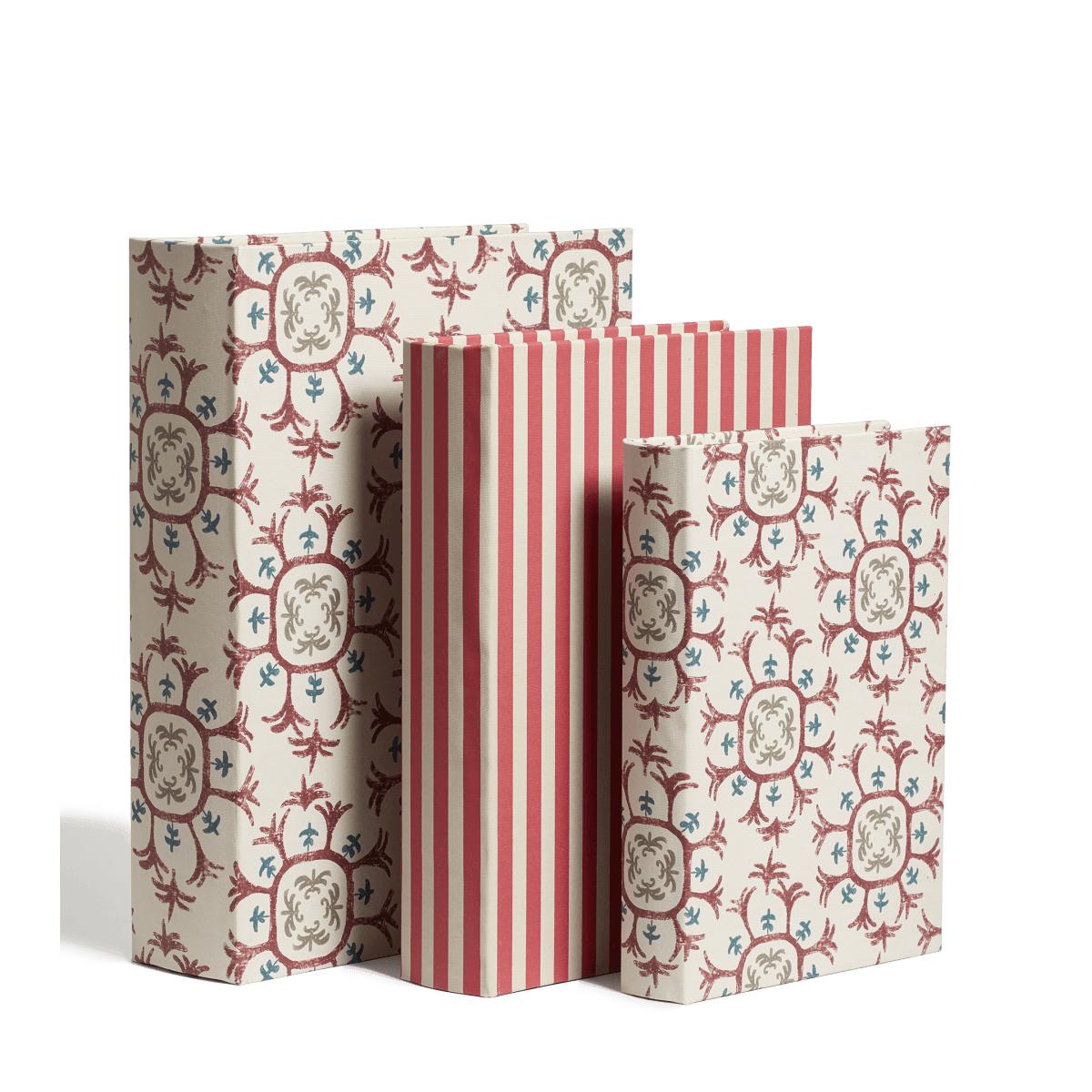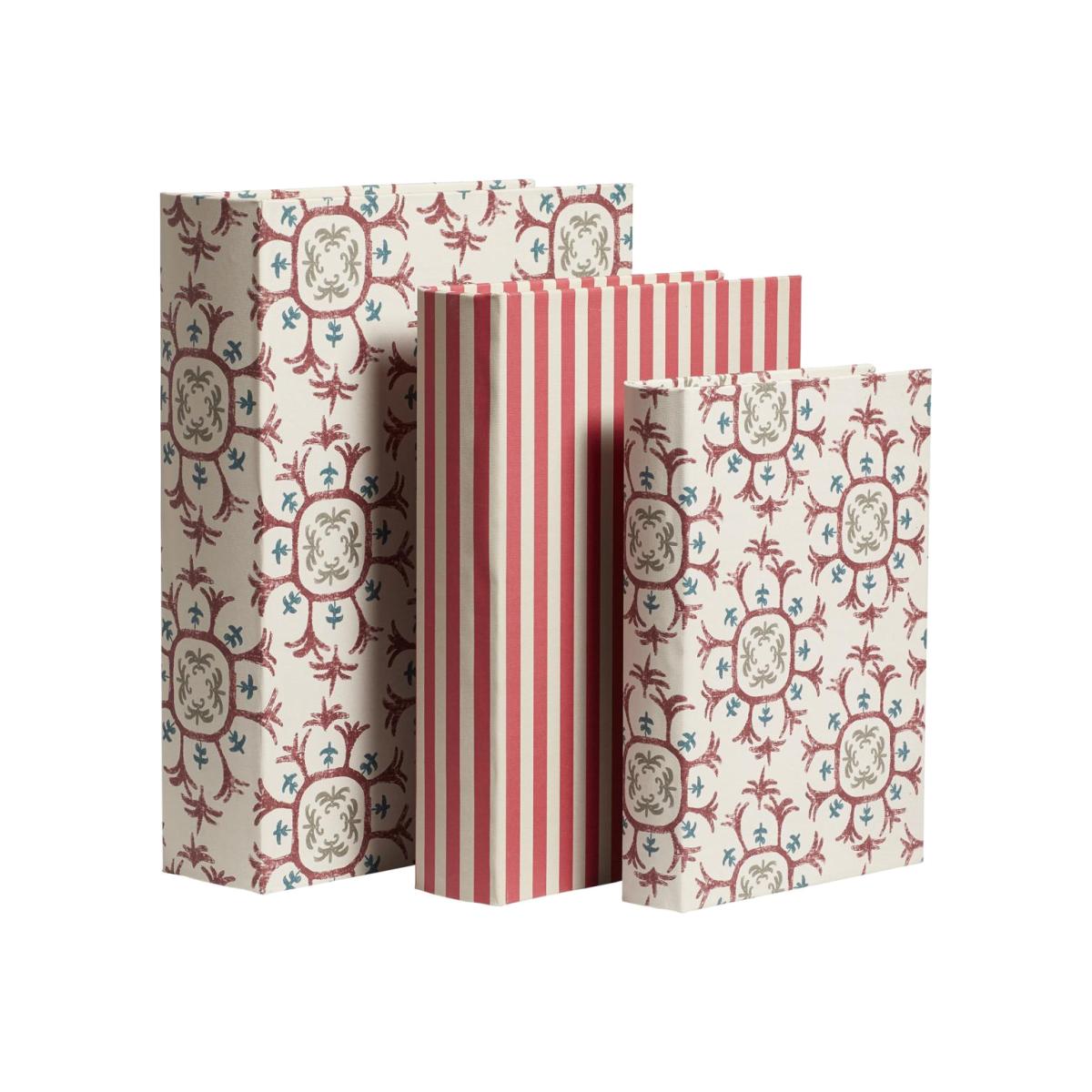 I love this set of three Odonata box files for its striking combination of pattern and colour, which makes organisation visually appealing. The deep red madder hue gives a rich, warm touch, making them a versatile addition to both modern and traditional interiors. They work well in home offices, living rooms, or creative spaces, adding a splash of colour to shelves or desks while keeping documents neatly tucked away. Practical styling tips include pairing them with neutral-toned accessories for a cohesive look, or stacking them with botanical or vintage-inspired objects to enhance their character. Their compact size makes them perfect for small spaces, and their eye-catching design elevates everyday organisation into a decorative element.