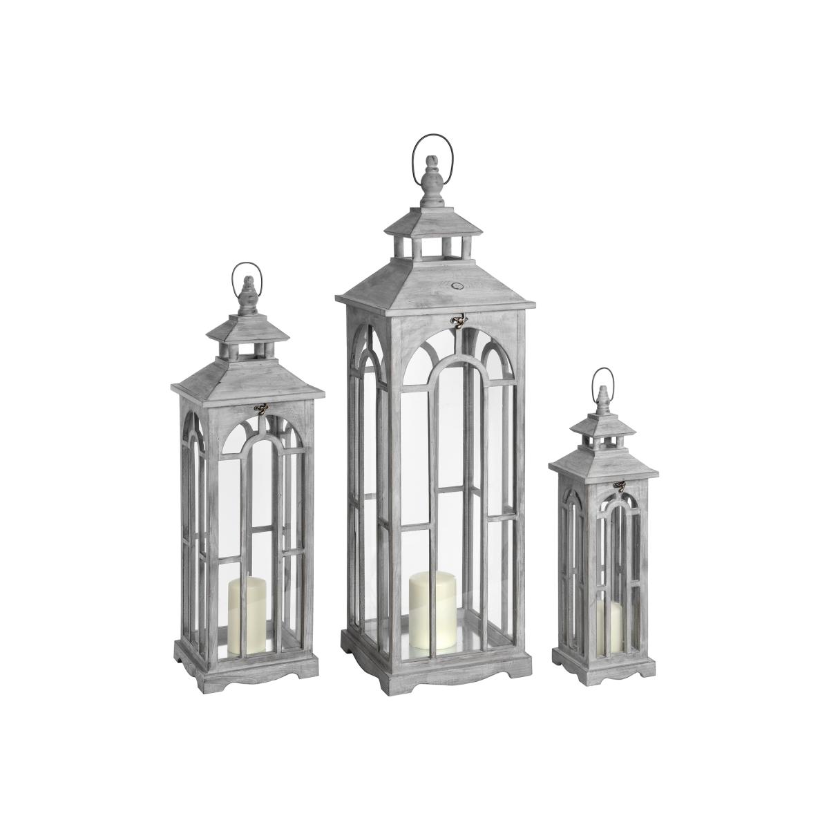 Set Of Three Wooden Lanterns for Elegant Home Decor - Grey