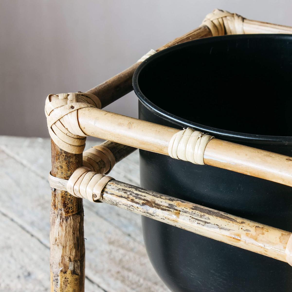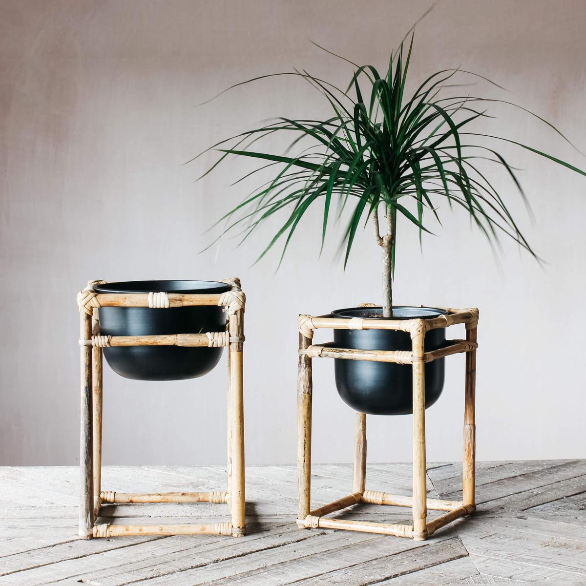 Balancing bamboo and iron, this duo of textural two-tone planters will complement your houseplant collection.