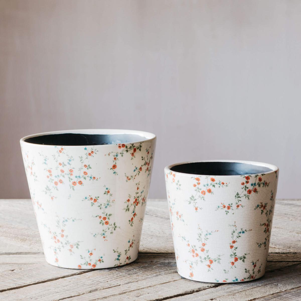 This set of two plant pots is made from ceramic with a delicate poppy print for your houseplants or herbs.