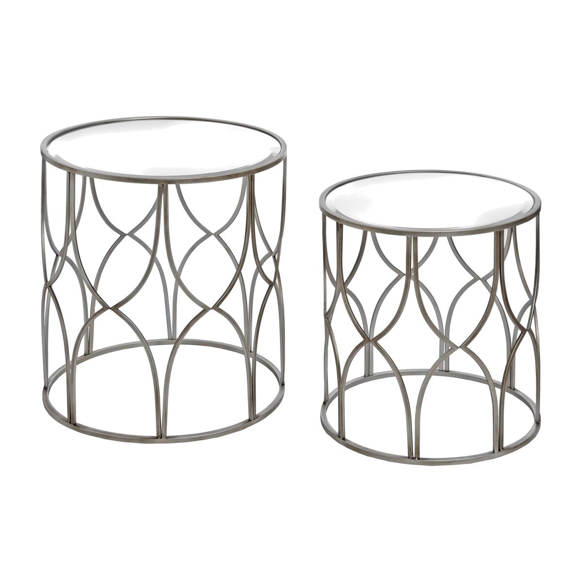 Set Of Two Lattice Detail Silver Side Table Elegant Decor - Silver