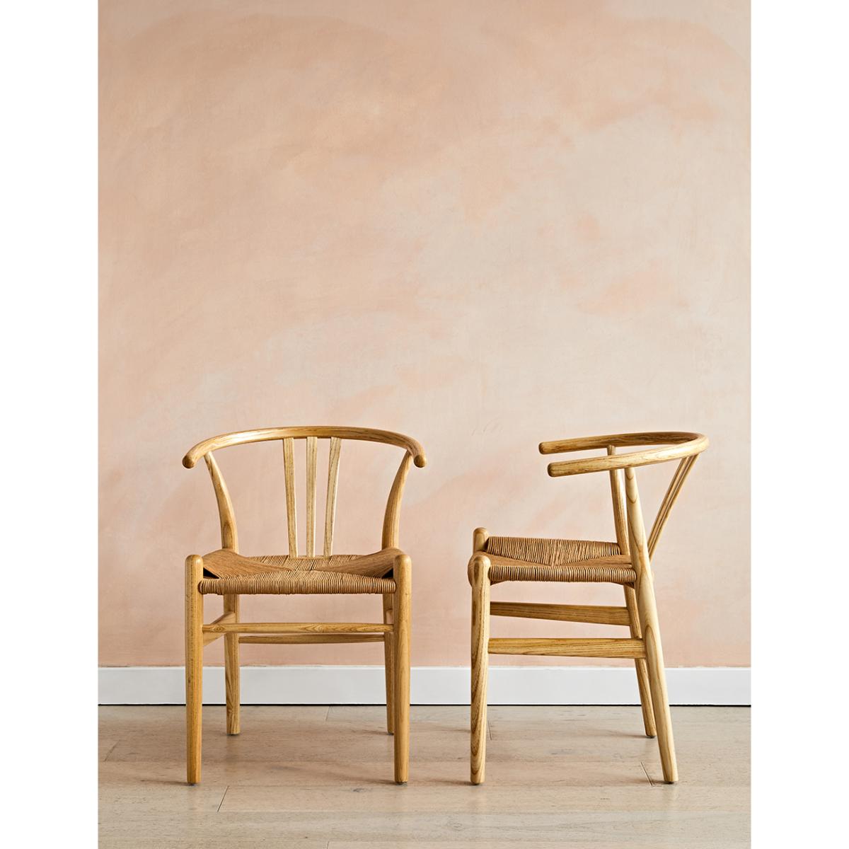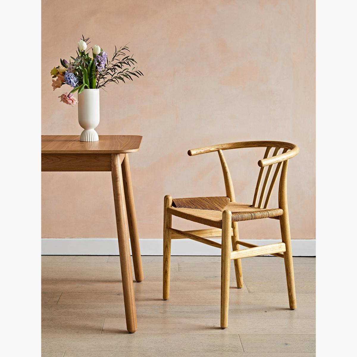 This timeless wooden dining chair features a low curved back, elm frame and paper weave seat, creating a classic chair that will stand the test of time.