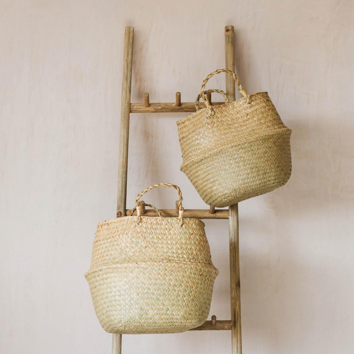 I love these natural grass baskets for their versatile and understated style, making them a practical addition to many interiors. They work particularly well in coastal, boho, or rustic settings, adding texture and warmth without overwhelming the space. Practical styling tips include using them as storage for throw blankets, magazines, or everyday essentials, keeping clutter discreetly out of sight. Their natural tone pairs effortlessly with neutral palettes or earthy colours, and they can be placed on shelves, under console tables, or even used as magazine or plant holders to add visual interest. These baskets are a simple yet effective way to introduce organic elements into your home with minimal fuss.