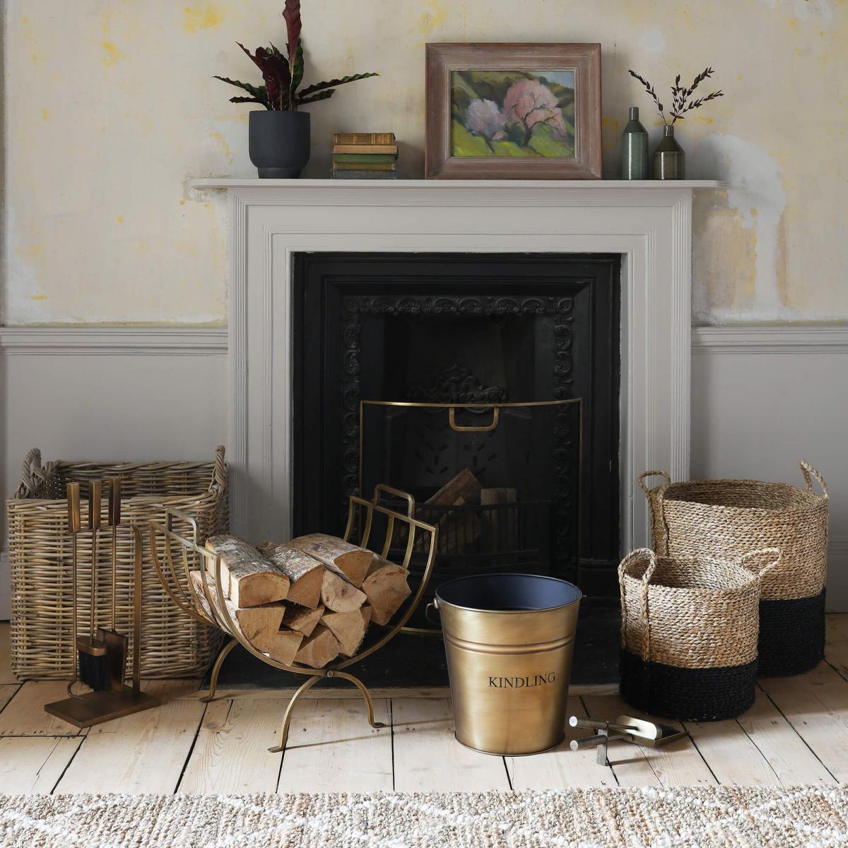 These baskets are a practical yet stylish storage solution, perfect for adding texture and warmth to a variety of interiors. I love how they work well in both modern and traditional settings, especially in living rooms, fireplaces, or open-plan spaces where you can keep logs, throws, or magazines neatly tucked away. Their natural wicker finish brings a cosy, organic feel, and styling them grouped together adds visual interest. For added organisation, consider using the smaller one for kindling or as a catch-all for everyday bits, while the larger can hold larger logs or even laundry. They’re versatile and sturdy, making them an easy upgrade for clutter-free, lived-in spaces.