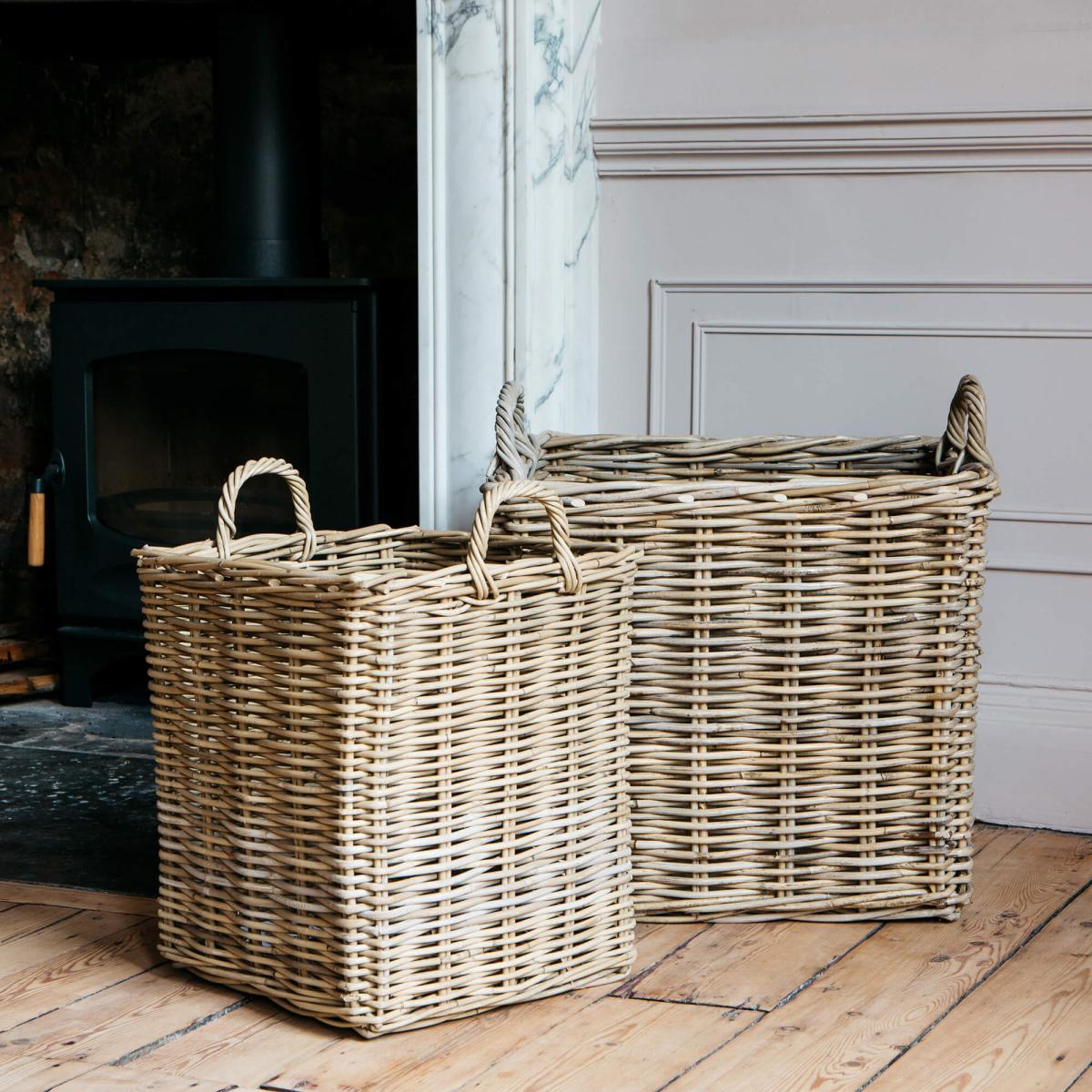 Set of Two Square Wicker Log Baskets