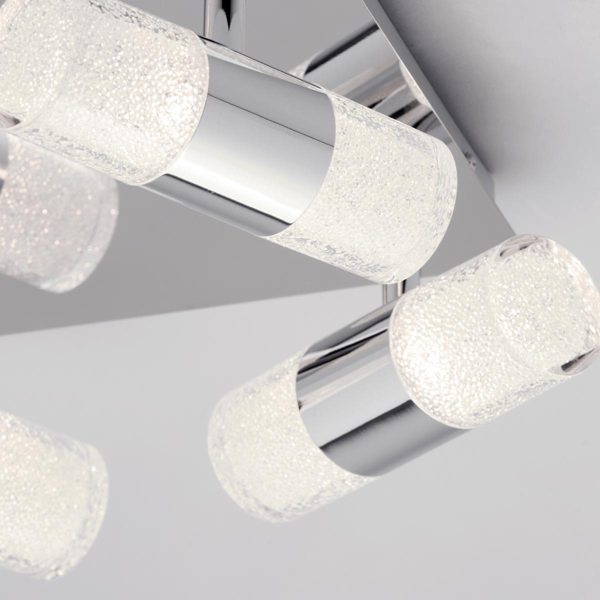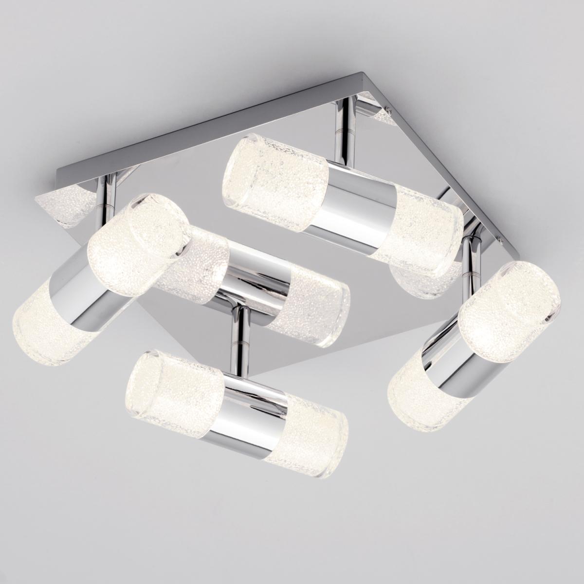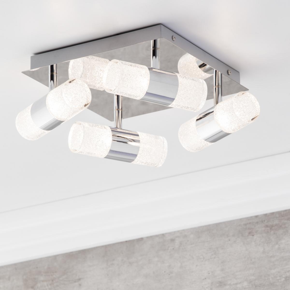 Gorgeously illuminate your bathroom with the Settle Bathroom Flush Ceiling Spotlight Plate in Chrome. The 4 heads of this ceiling lamp feature twin LEDs providing a large spread of relaxing warm white light. The chrome finish and IP44 rating for water resistance of this 8 light fixture marry sleek looks and practicality.