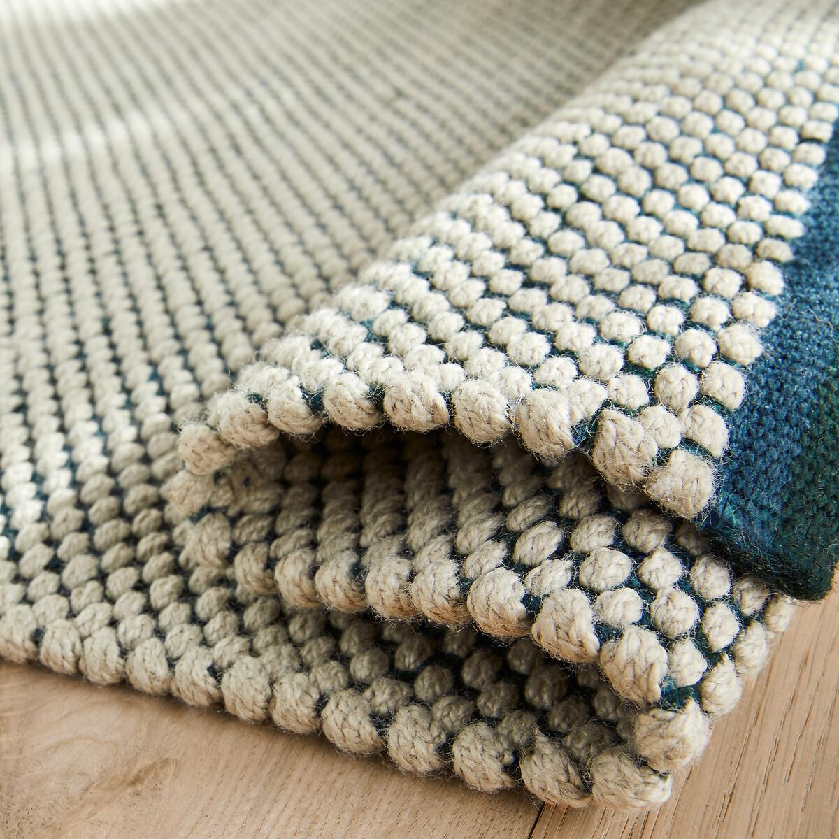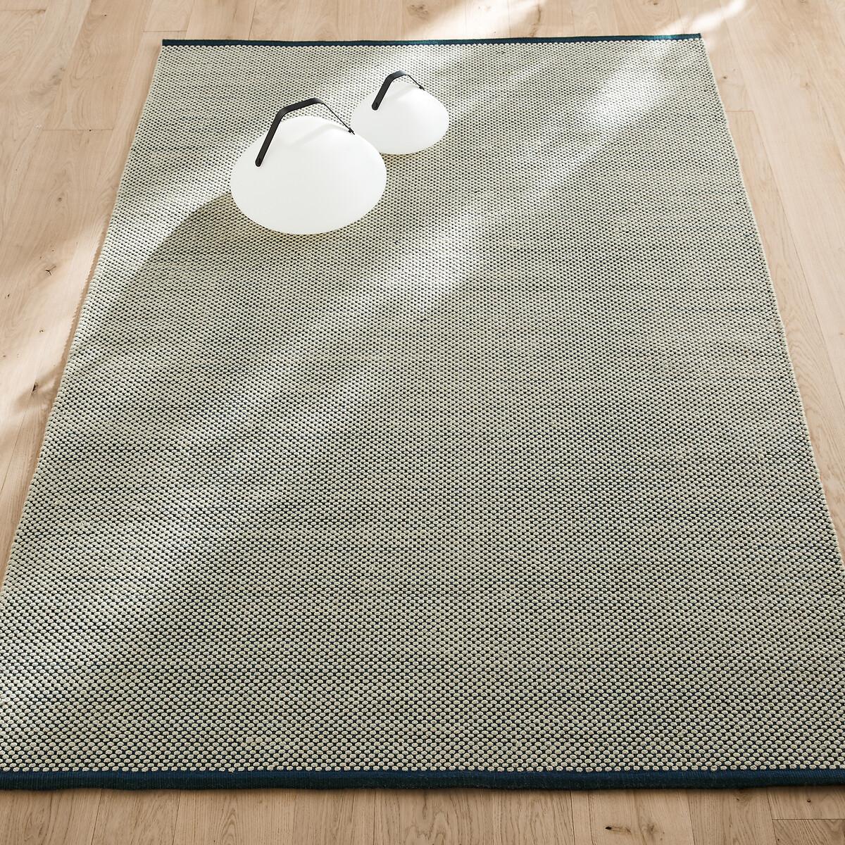 Anchored in its time. This 100% recycled polyester rug features a very contemporary minimalist multi-coloured pattern. Enhanced with a black stripe, its tight, contrasting weave plays the card of simplicity, in a pointillist spirit. Works outdoors and indoors. All our rugs are handcrafted, a guarantee of quality and uniqueness. Real decorative elements, thermal and sound insulators, they warm the atmosphere. Product Details • 100% recycled polyester • Craftsmanship: hand woven • Weight: 2800g/m²Quality Info • Polyester is a synthetic material with a soft touch. Care Advice • Vacuum regularly • To remove a stain, immediately dab the carpet with an absorbent tissue or damp cloth if necessary. For larger and deeper stains, seek professional service. Dimensions • Width 160 x Length 230cm • Width 200 x Length 290cmDelivery:. Available for home delivery. • Recycled polyester. Using recycled polyester is all about conserving resources and reducing waste.
