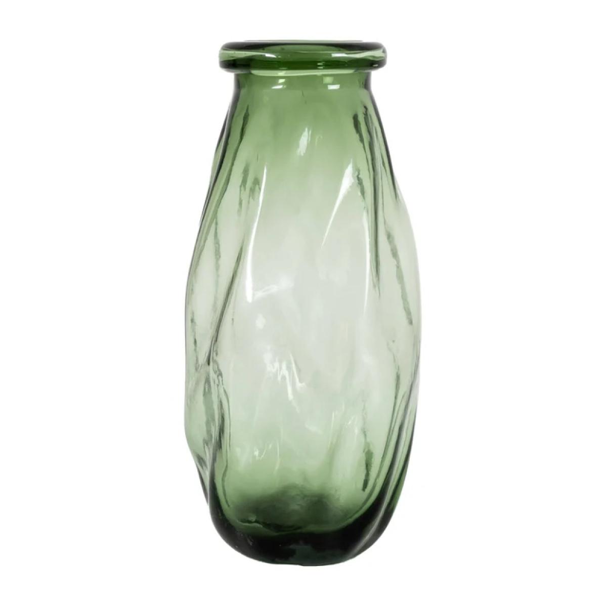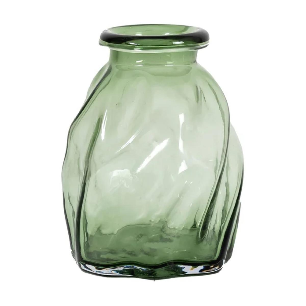 In beautiful green glass, the organic undulating form of this vase catches the light perfectly, creating shadows and shine wherever its placed. A smaller version is also available,and the pair look great when placed together. Width 155mm Depth 155mm Height 340mm Colour - Green Material - Glass