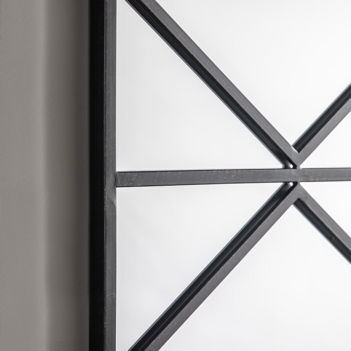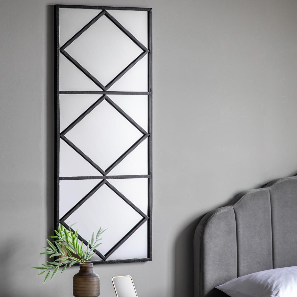 Bring the bold looks of the Severn Mirror to your home interiors with it’s large rectangle shape, geometric design on the front and bold metal frame in a clean black finish.