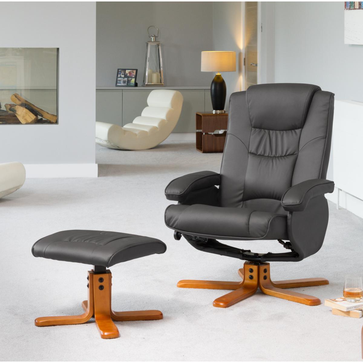Our Severn Swivel Recliner is our best selling recliner chair. This product, despite being a narrow model, has a spacious seating area and is ideal for your living room or home office. The chair is constructed from solid hardwood and foam covered for comfort. The chair is upholstered in soft, durable bonded leather although some faux leather match is used on the lower stress areas including, but not limited to, the back and sides of the chair. The chair also boasts an integrated heat function in the lumbar area and massage points in the seat, lower back and headrest area.