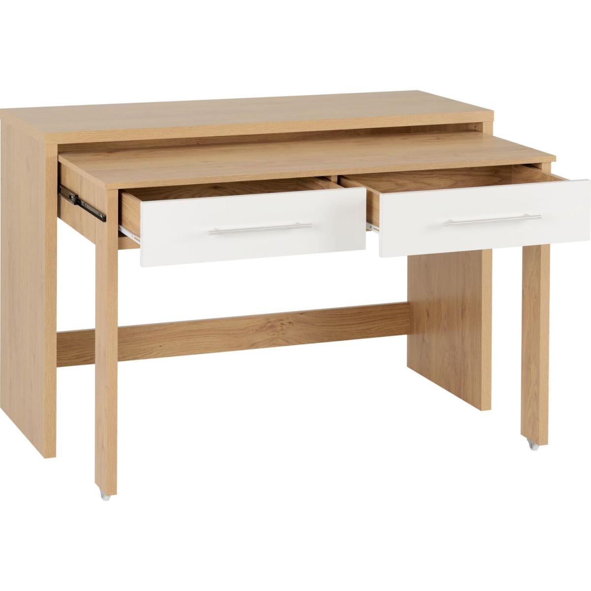 Ideal for smaller office or living spaces, the Seville slider desk makes it easy to transform any space into a home office. Thanks to the handy pull out section, you can quickly transform this desk to almost double your workspace, and then easily slide it back under to save space. This stunning self assembly desk comes complete with two spacious drawers in a choice of white or grey fronts. UK Mainland delivery only, between 9am - 9pm (weekdays) the courier will contact you on the day of delivery to offer a time slot. This takes place within 10 working days (Ground floor only). Please also ensure that we have a note of your up-to-date address and contact information, to be passed to the couriers.