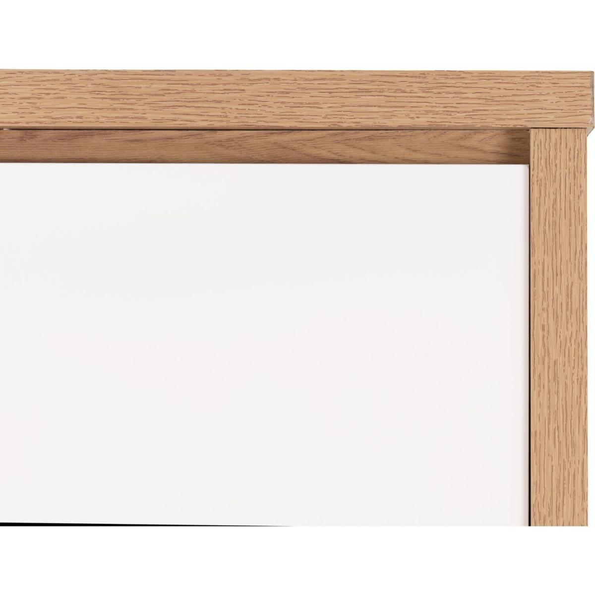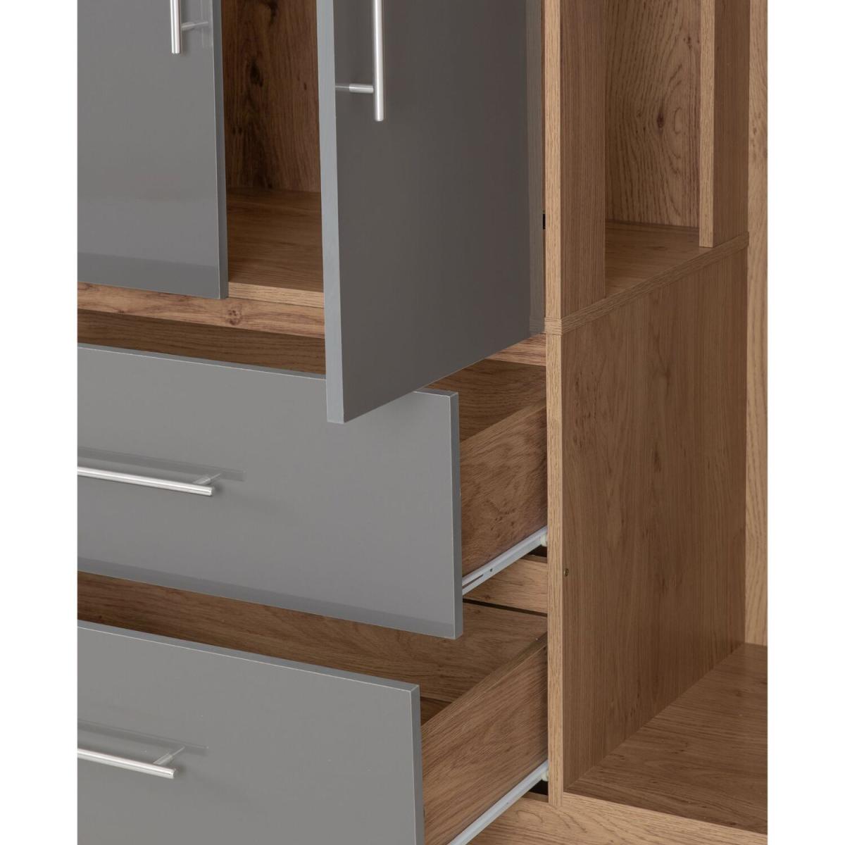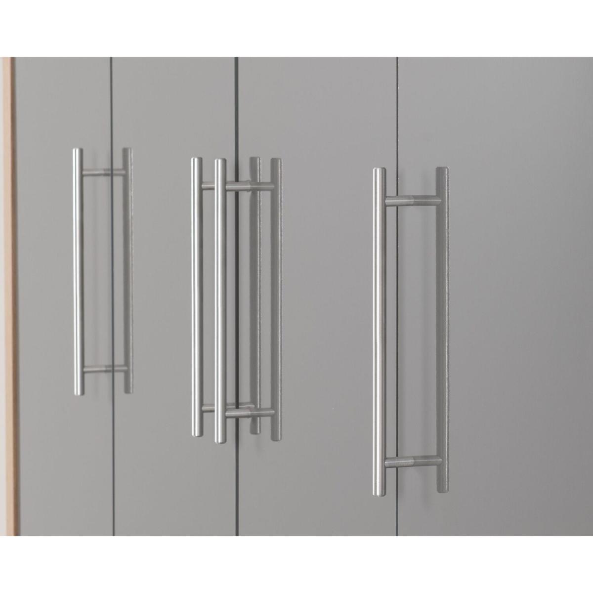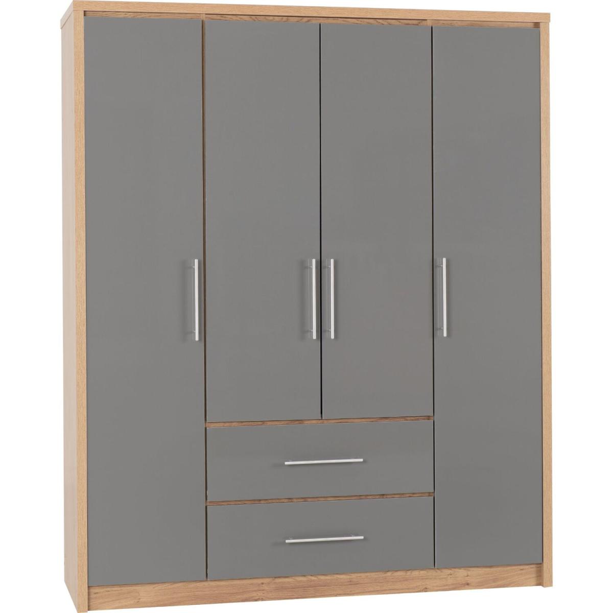 I love the Seville wardrobe for its crisp white doors framed in oak-effect - it sits equally well in Scandi, coastal or contemporary schemes. Four doors plus two deep drawers and adjustable shelving mean you can tailor the interior for folded clothes, storage boxes or bedding. For styling, keep the top clear with a single low plant, a woven basket or small framed print, then echo the handle finish in nearby hooks or drawer knobs to tie the room together.