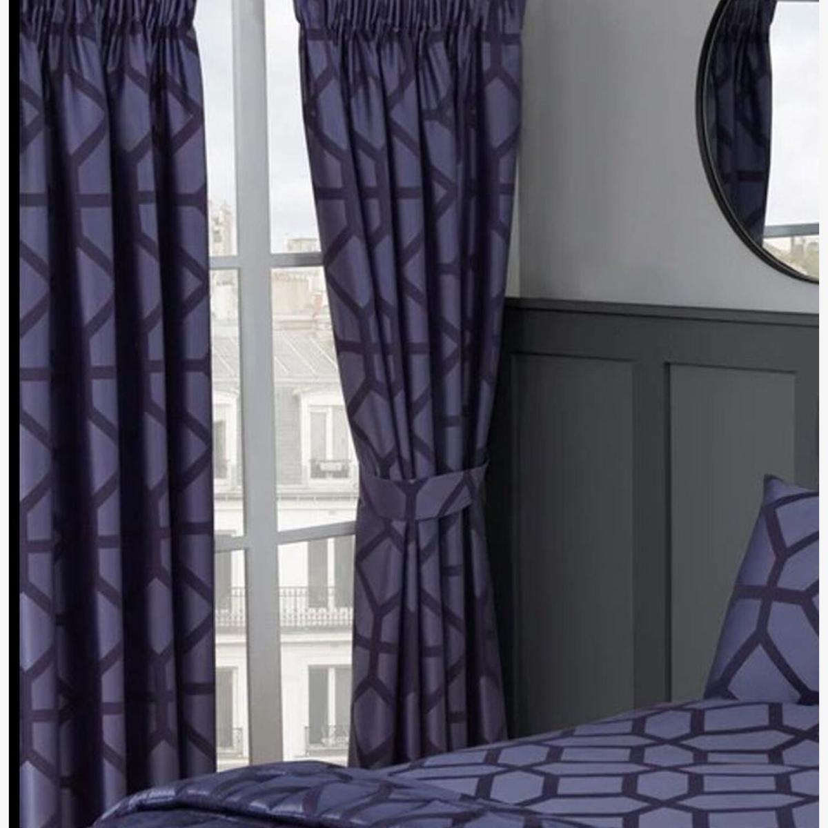 Seville Jacquard Lined Curtains and Tie Backs - Navy