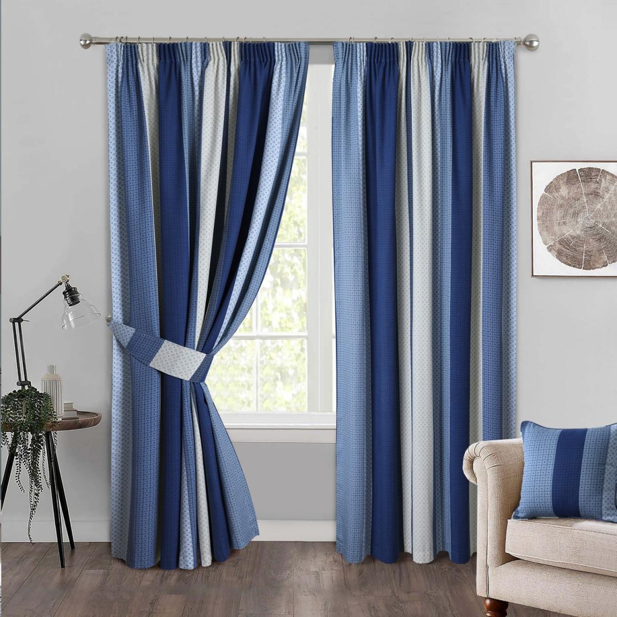 Add a splash of soothing colour with these cotton mix stripe pencil pleat readymade window curtains, complete with soft cream lining, and curtain tiebacks are included! Suitable as living room curtains, and ideal for bedroom curtains.