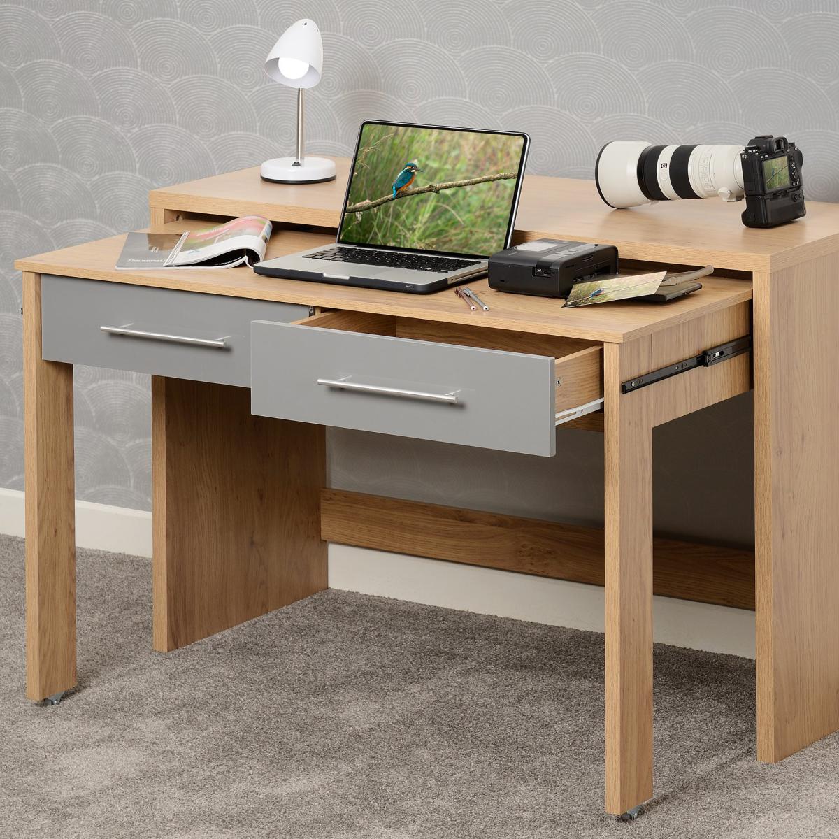 Ideal for smaller office or living spaces, the Seville slider desk makes it easy to transform any space into a home office. Thanks to the handy pull out section, you can quickly transform this desk to almost double your workspace, and then easily slide it back under to save space. This stunning self-assembly desk comes complete with two spacious drawers in a choice of white or grey fronts. Under Desk Chair Space: H 60 x W 106 x D 44cm. Please note, unfortunately we cannot deliver this item to Northern Ireland or the Channel Islands.