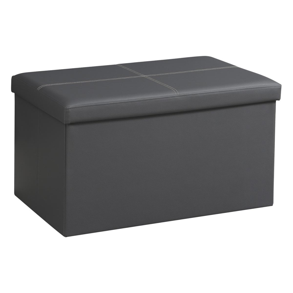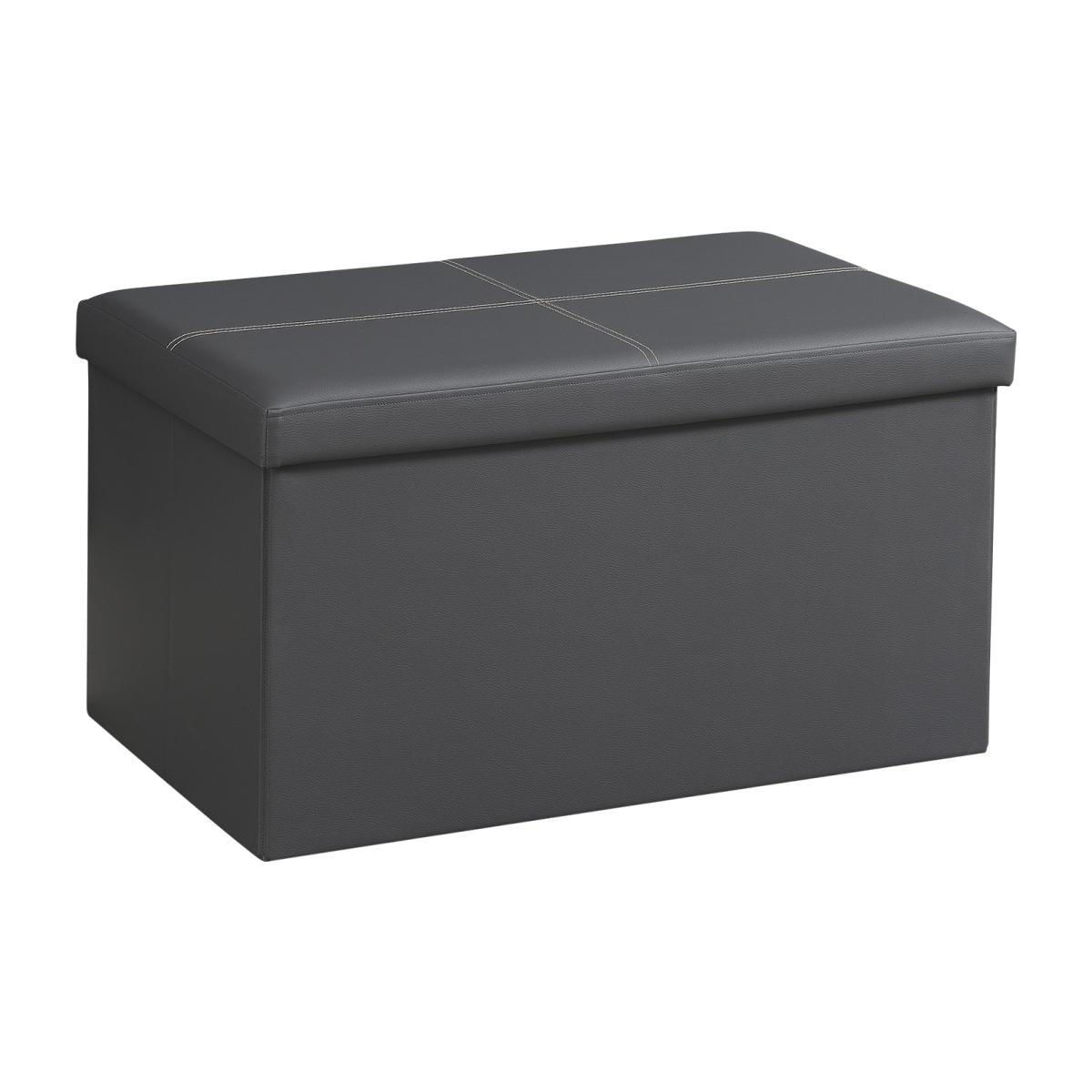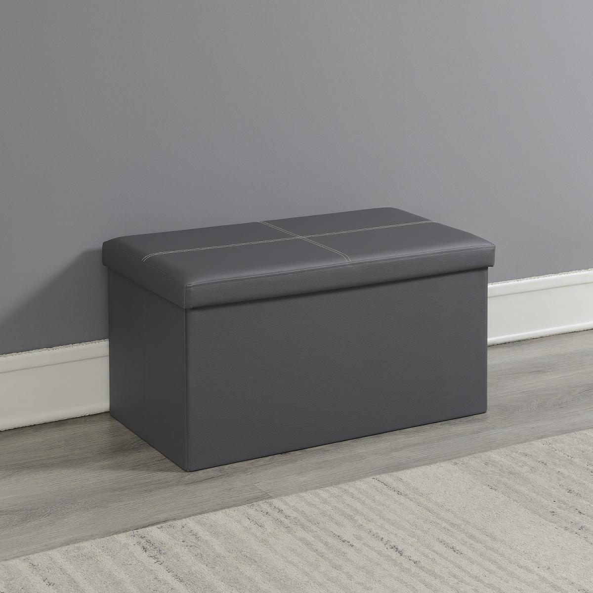 Incredibly stylish and practical, this gorgeous Seville Storage Trunk will be a wonderful addition to your home. Perfect for placing at the foot of your bed, in a children's play room or in a dining room, the attractive leather-look finish with detailed stitching will create a stunning focal point in your living area. Keep everything from books and clothes to toys and shoes tidy and out of sight with the large internal space and easy-to-remove lid. If ever not in use, this fabulous box collapses flat for easy storage but with its elegant design it will be hard to keep it hidden away. Please note: Not suitable for sitting.