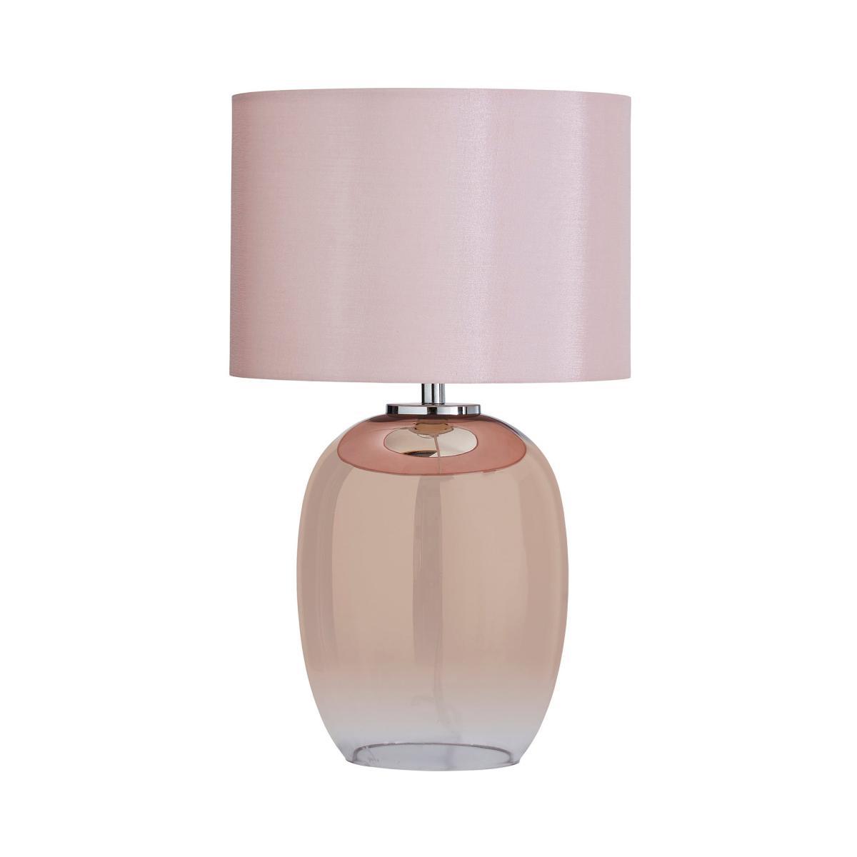 Crafted with a blush pink ombre finished glass base, the Seychelles Table Lamp would make a glamorous addition to any home. This stylish lamp is finished with a gorgeous faux silk shade and sleek chrome detailing.