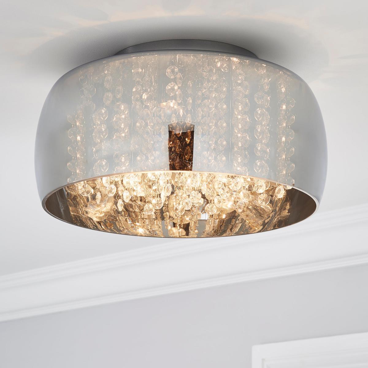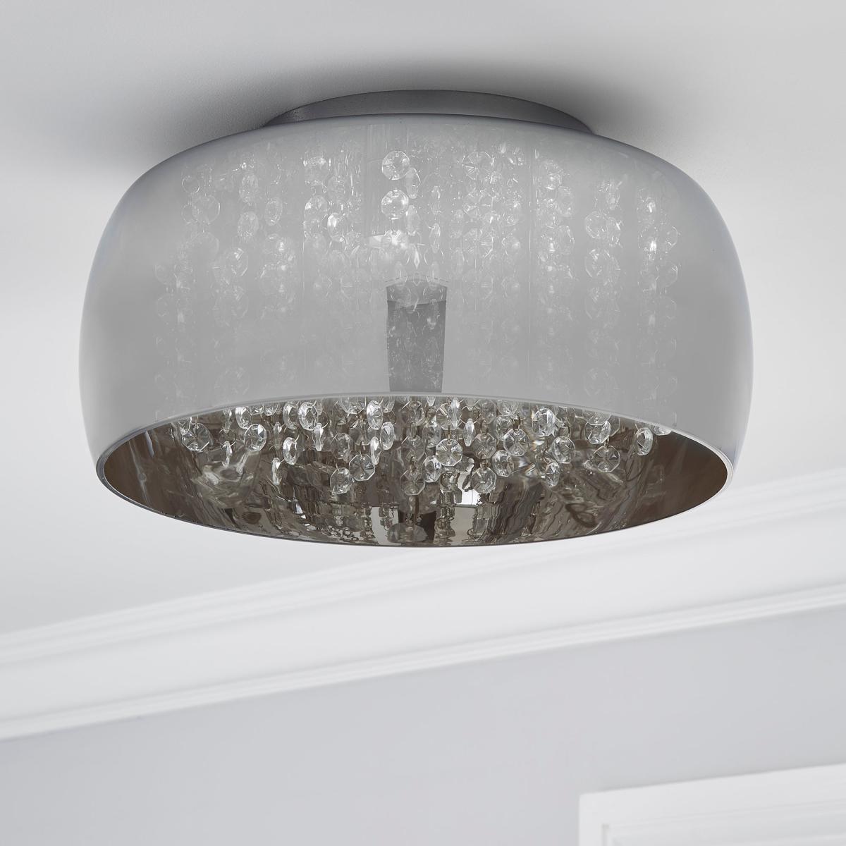 Featuring a smoked finish glass shade the Seychelles ceiling fitting would make a glamorous addition to any room. This flush fitting is designed with a chrome ceiling plate and delicate clear hanging glass droplets, creating a stunning effect.